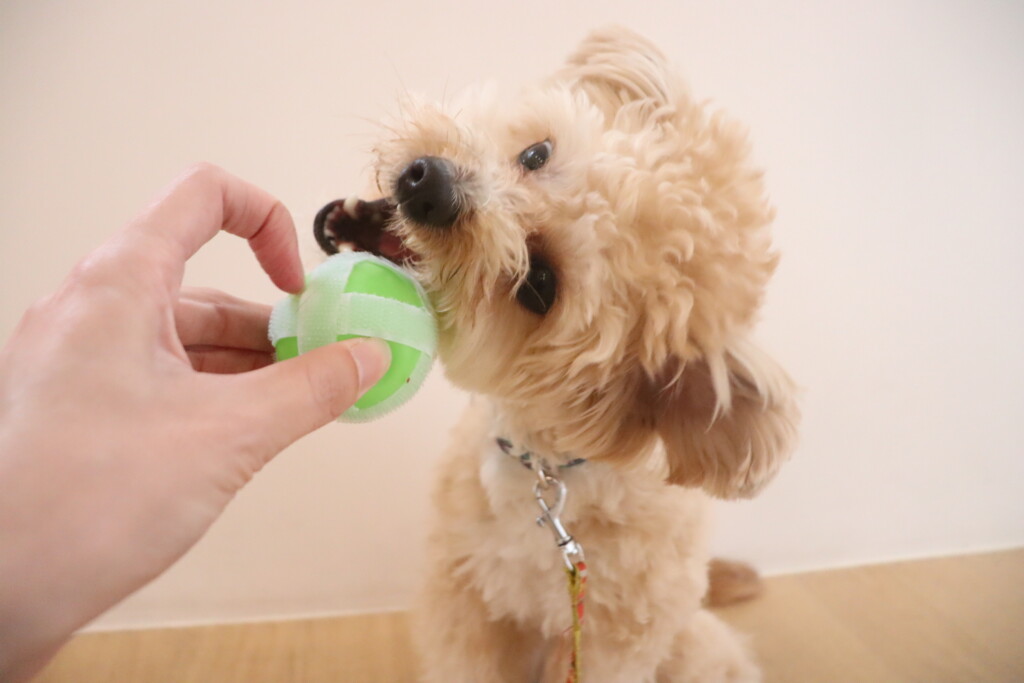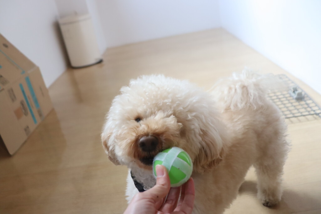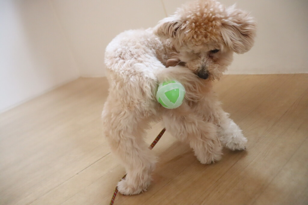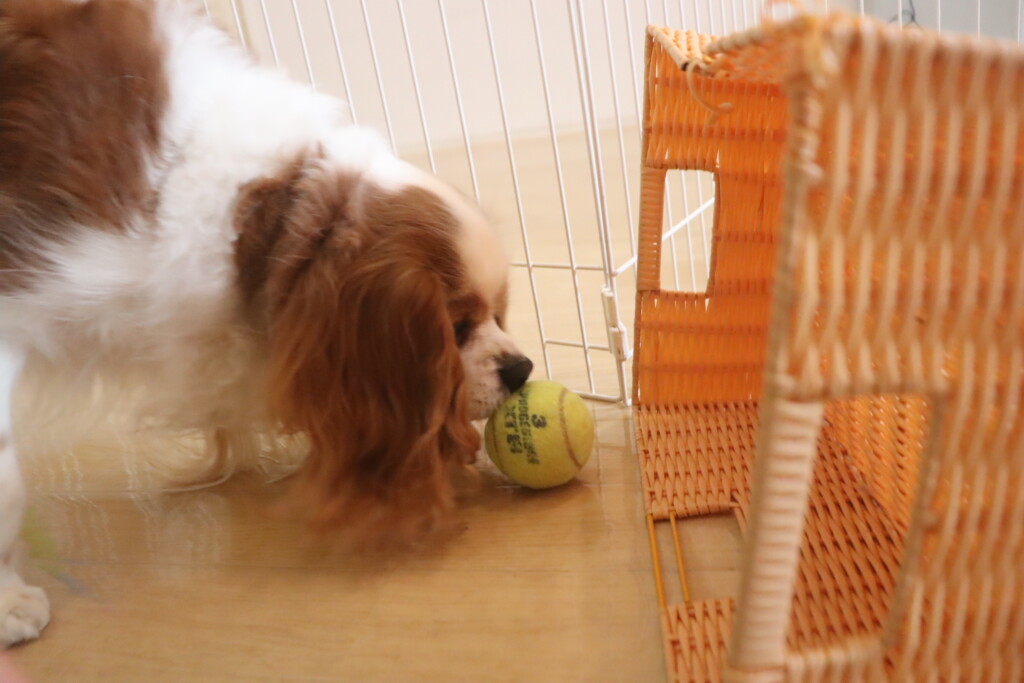 晴くん、陽向くん、アンディくんは、的当て用のくっつくボールで物慣れを行いました♪全頭気になるようで、自ら近づき感触を確かめていましたが思った感触ではなかったようで驚いている様子が可愛らしかったです🤭