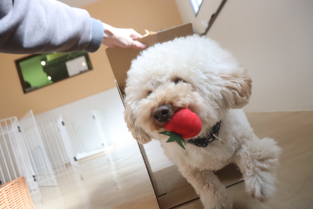 閉じていたダンボールも鼻を使って器用に開け、見事脱出することが出来ましたよ👏ラテちゃんにとっては楽勝な様子でした🔥