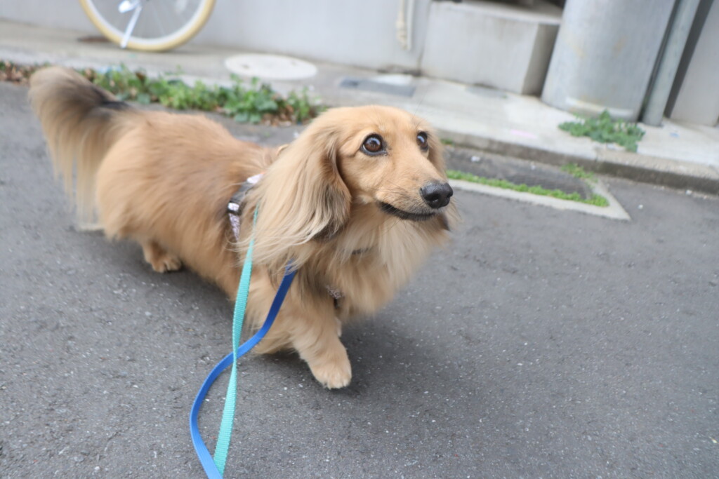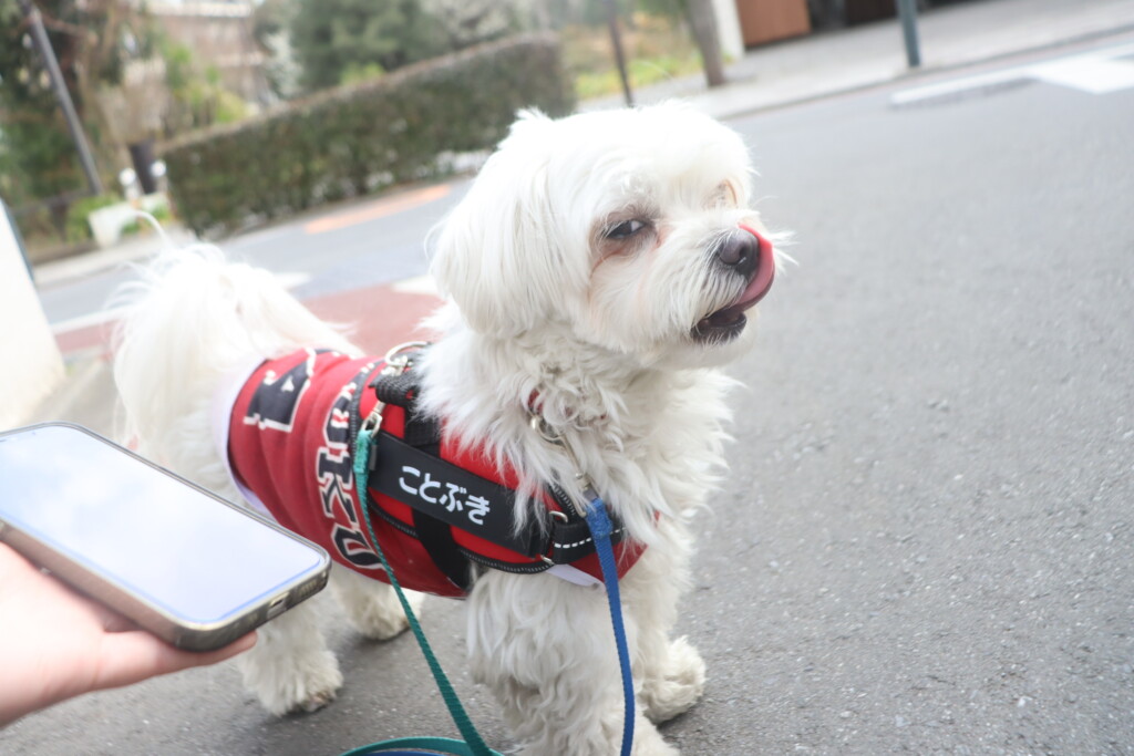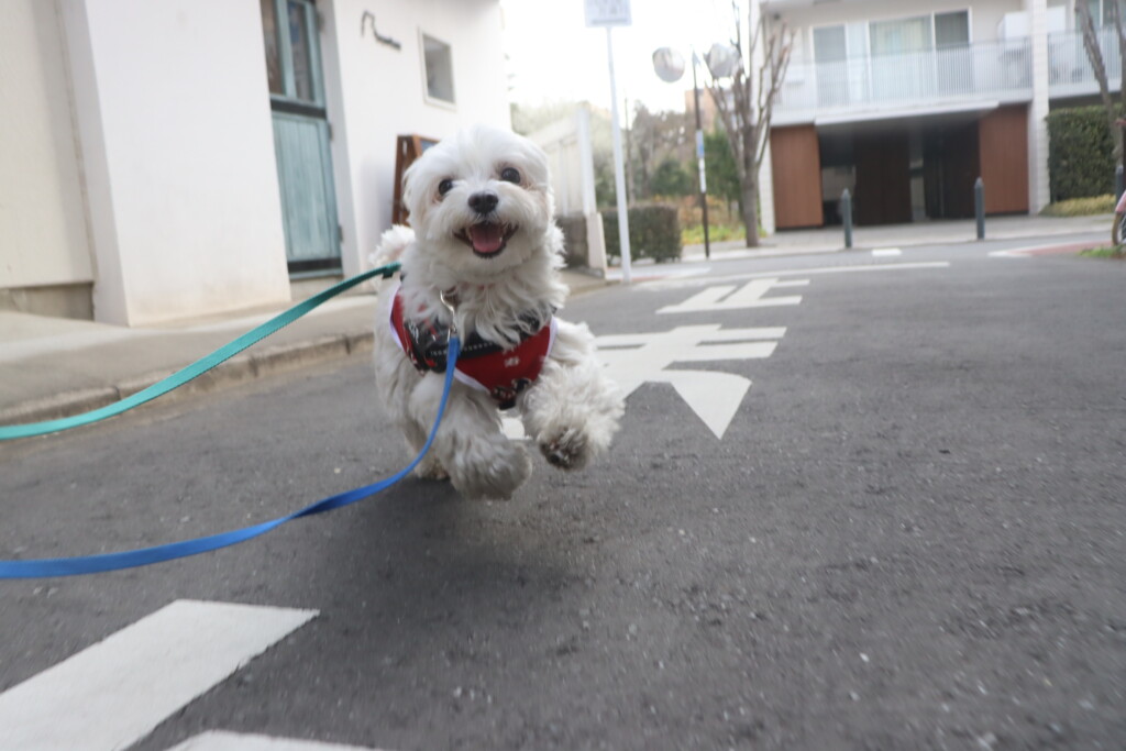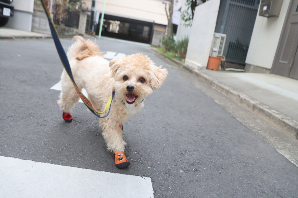 そのままお外にも出てみましたが変わらず楽しそうに歩くアンディくんでした!どのような環境でも履いていられるように引き続き練習していこうね💪