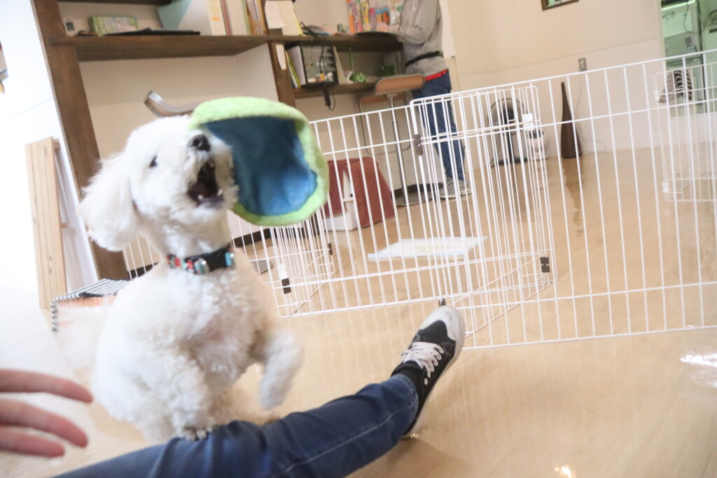 アンディくんは靴を履いてトレーニングを行いました👟特に気にすることもなく楽しそうに動くことが出来ましたよ♪