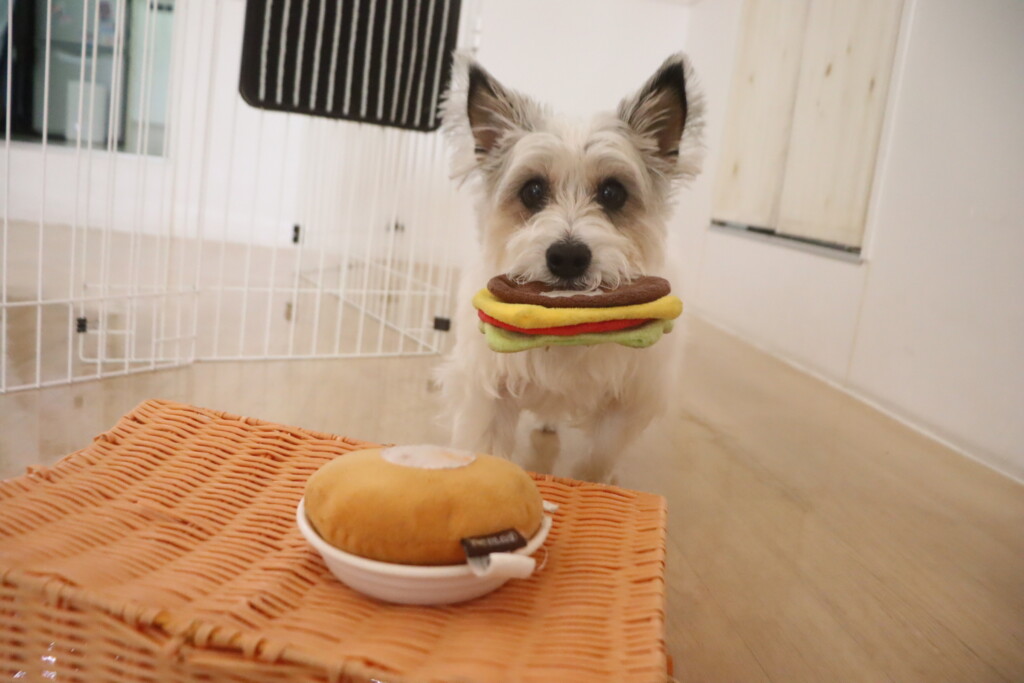 ソフィちゃんはハンバーガー作りの難易度を上げて練習しました!まずはお皿の準備をしようと思いましたが、ポイっとお皿を投げ捨てるソフィちゃん💦