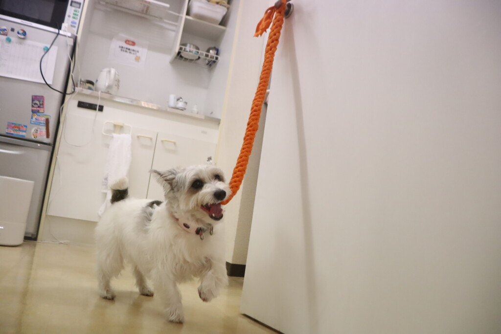 茶々丸くんは、ロープ引きの練習を行いました♪いざやってみるとカゴの重さからか引っ張ることに苦戦する茶々丸くん💦