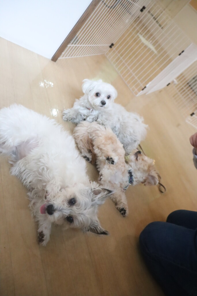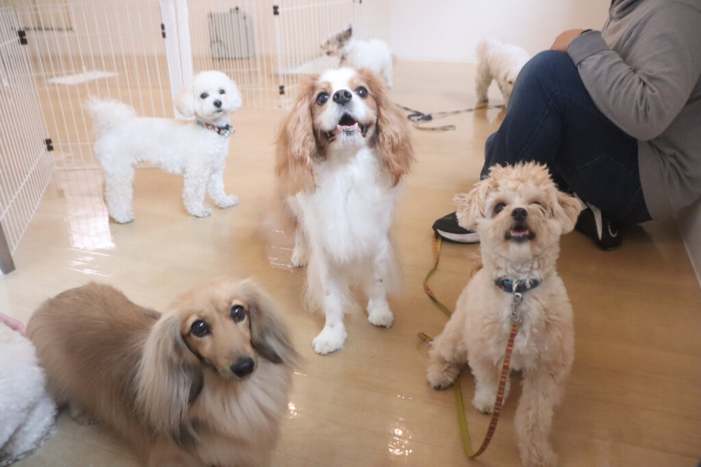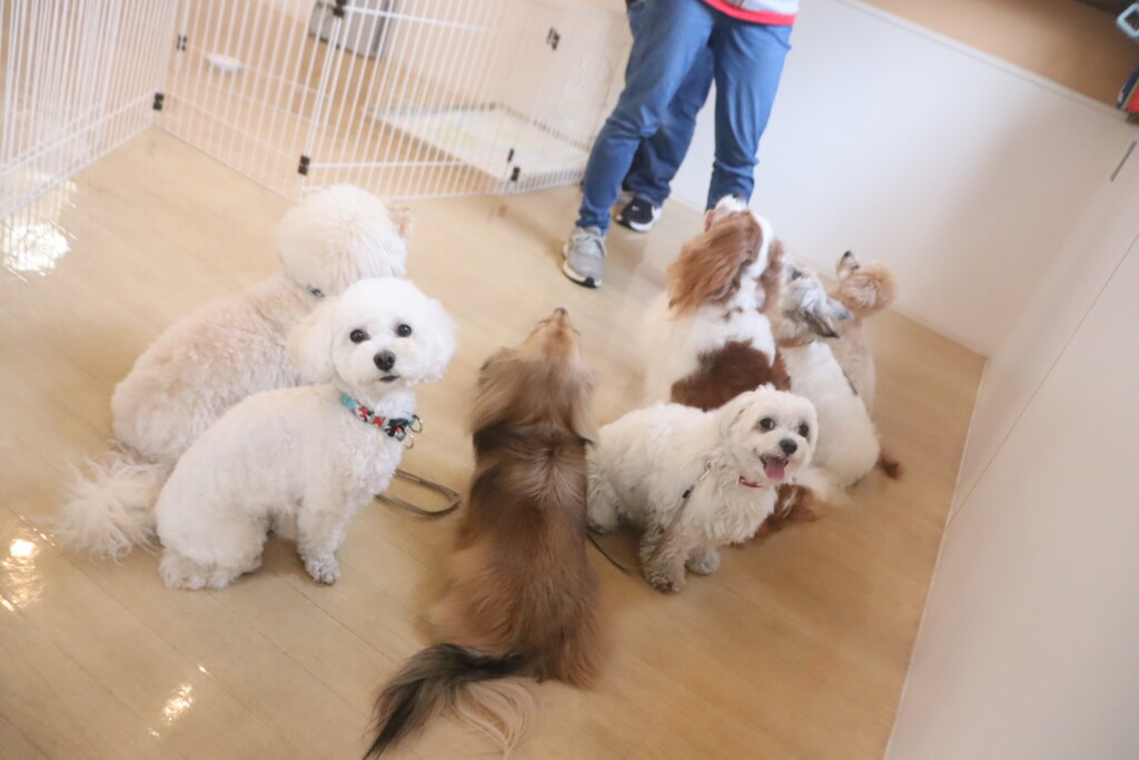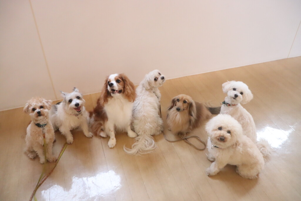 今日の保育園生は、キャバリアキングチャールズスパニエルの茶々丸くん、マルチーズ×トイプードルの晴くんと陽向くんとアンディくん、ジャックラッセルテリアのソフィちゃん、カニンヘンダックスフンドのラテちゃん、マルチーズのことぶきくんです!