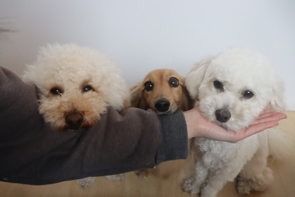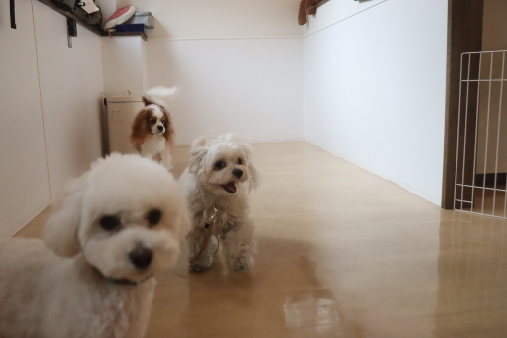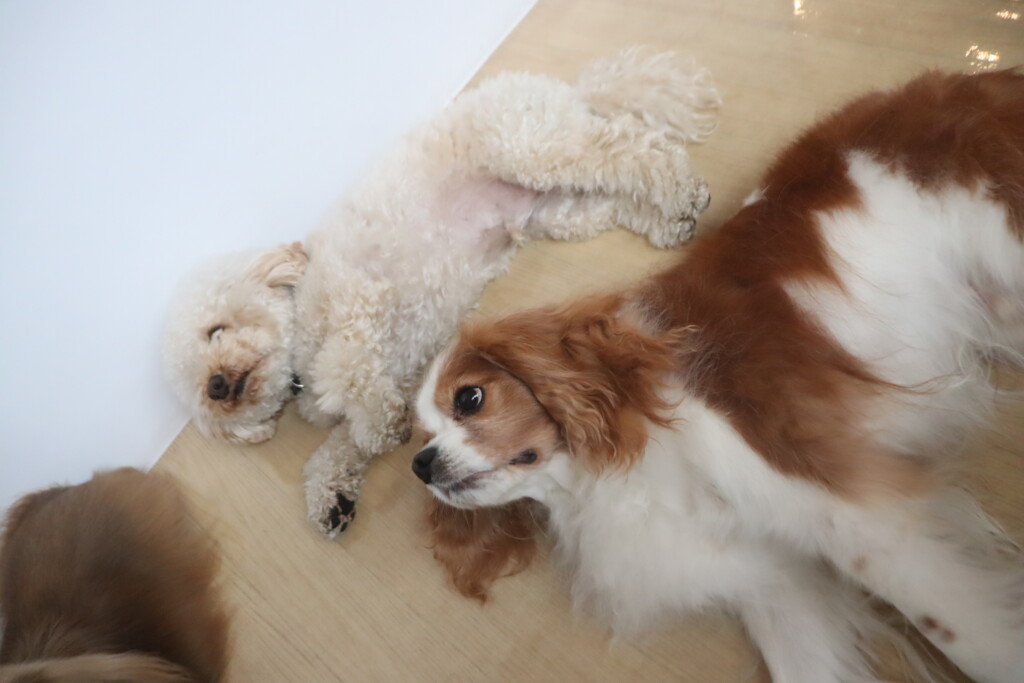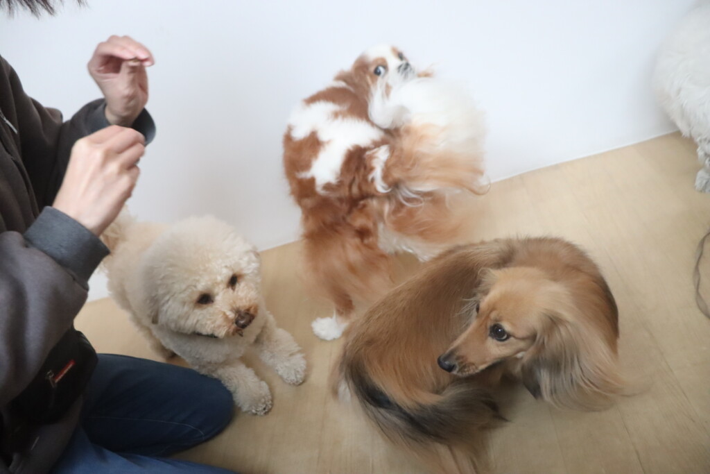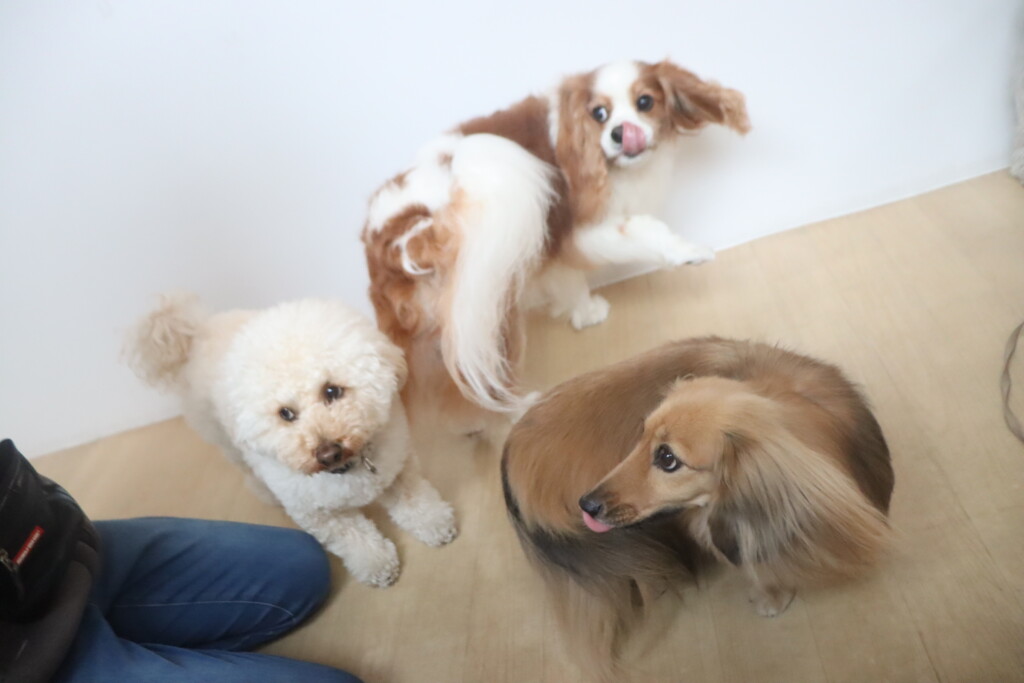 今日の保育園生は、キャバリアキングチャールズスパニエルの茶々丸くん、マルチーズ×トイプードルの晴くんと陽向くんとアンディくん、ジャックラッセルテリアのソフィちゃん、カニンヘンダックスフンドのラテちゃん、マルチーズのことぶきくんです!