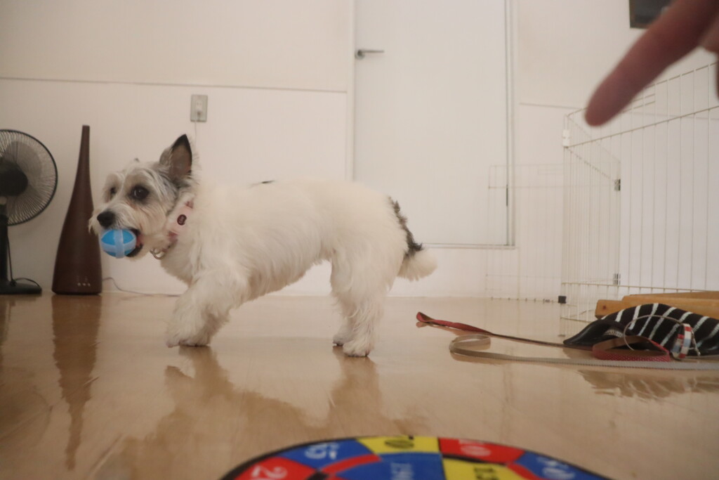ボールを咥えるのに苦戦していたので、ひとまず今回は的の上に落とせればOK👍