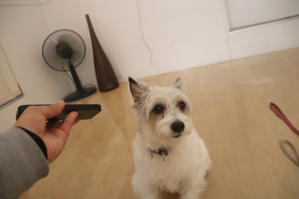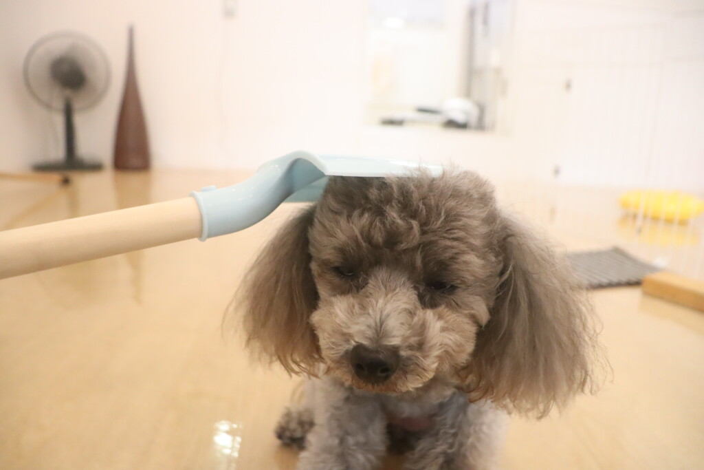 スイッチをONにして頭上で動かすと視線が泳いでいましたが、動いて抵抗するわけでもなくその場で良い子に終わるのを待っていました!動かないほうが早く終わるので賢いですね🤭