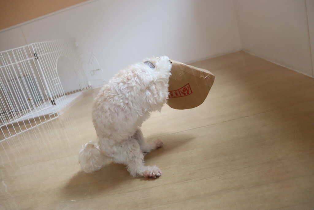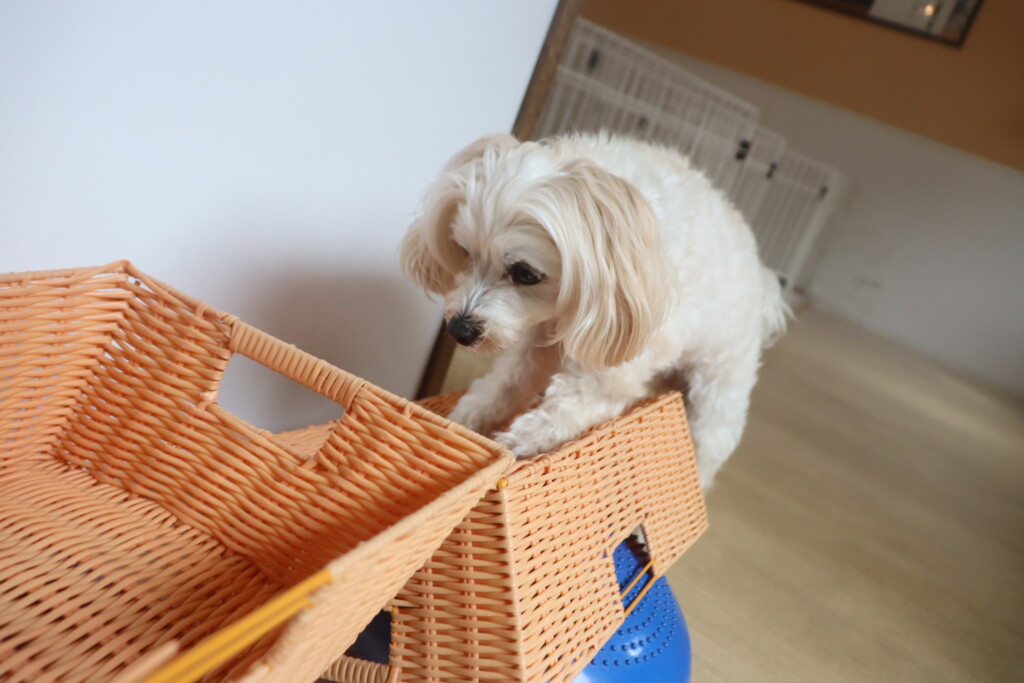 倒れる音が怖いようで逃げ足の速いソフィちゃん😂