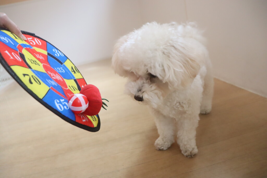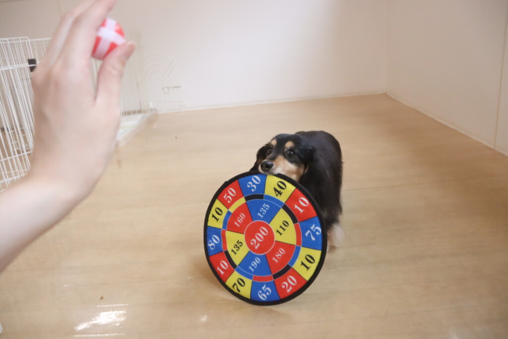 咥えずらいマジックテープボールも器用に咥え、しっかり高得点を狙って当てに来るレアちゃん!(^^)!