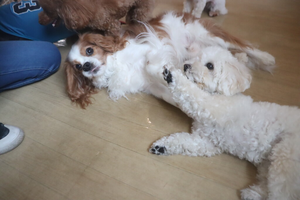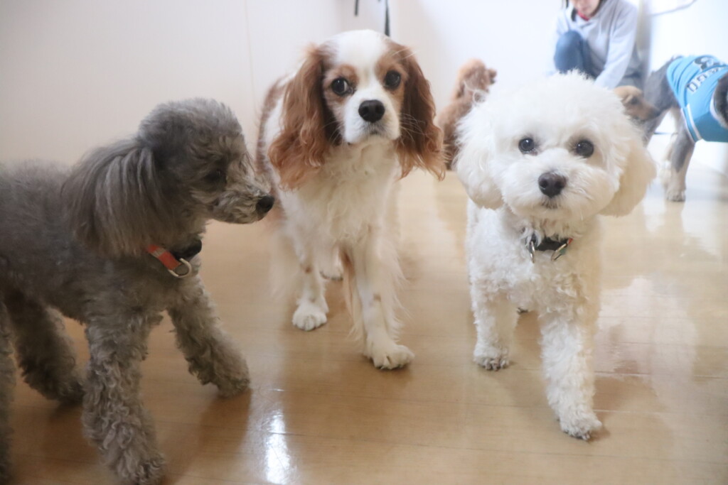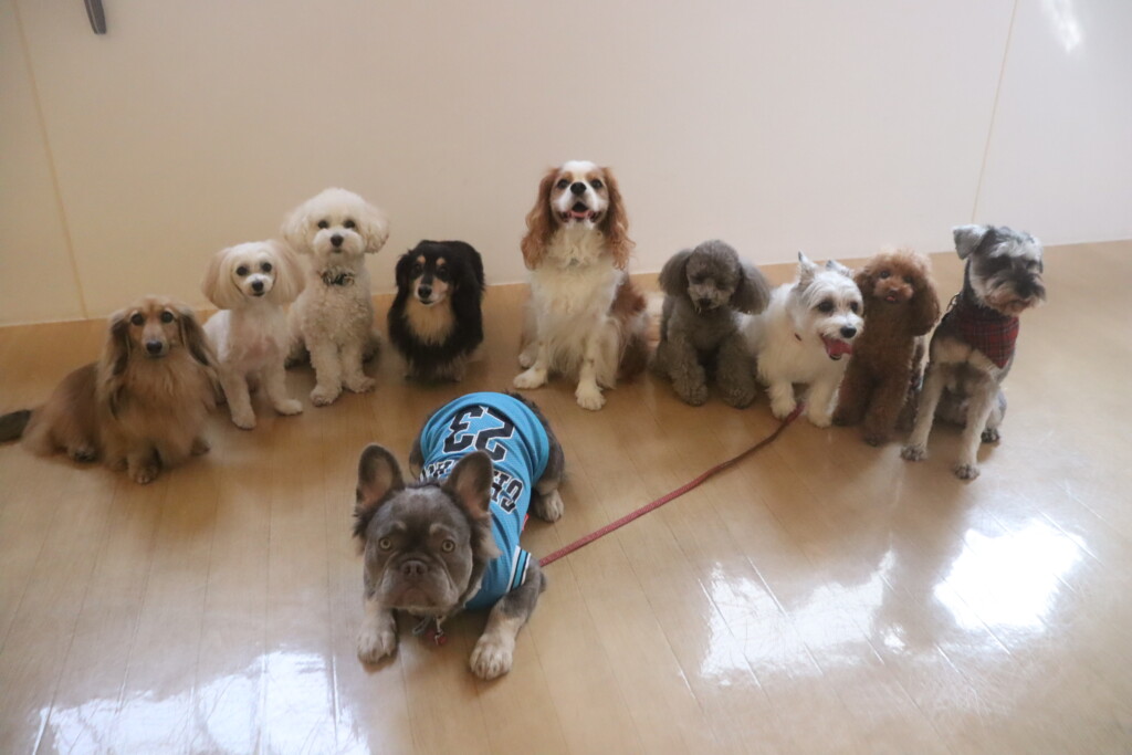 今日の保育園生は、マルチーズ×トイプードルのレアちゃん・陽向くん、ジャックラッセルテリアのソフィちゃん、カニンヘンダックスフンドのラテちゃん、トイプードルのアンジュちゃん・くうちゃん、ミニチュアシュナウザーのレイアちゃん、キャバリアキングチャールズスパニエルの茶々丸くん、フレンチブルドッグのハイちゃん、ミニチュアダックスフンドのすいれんちゃんです!