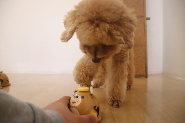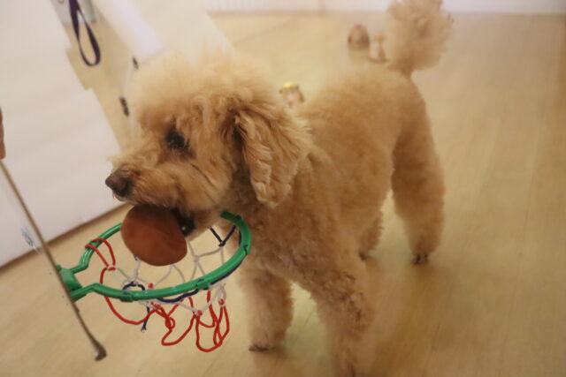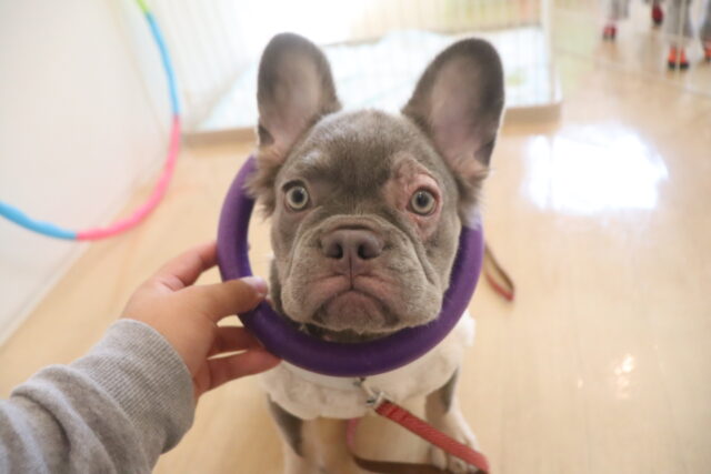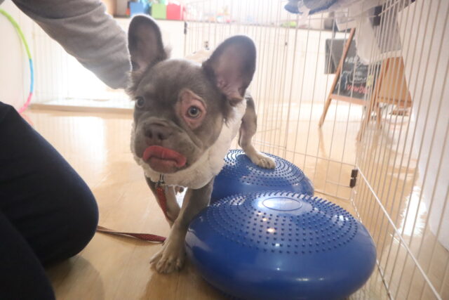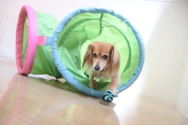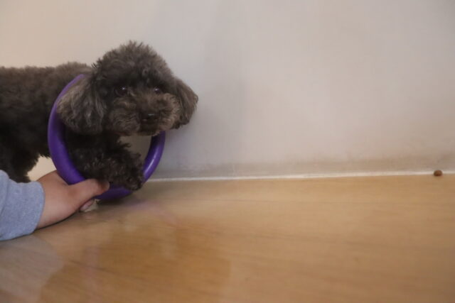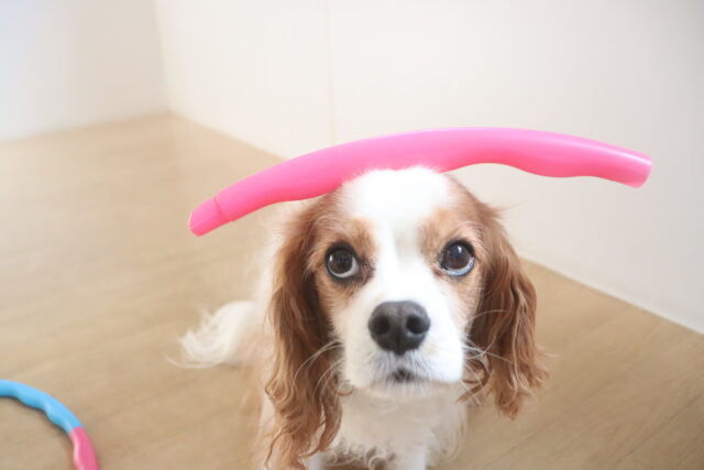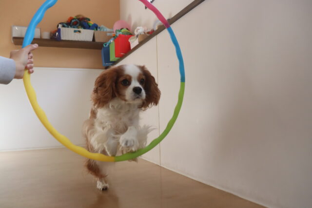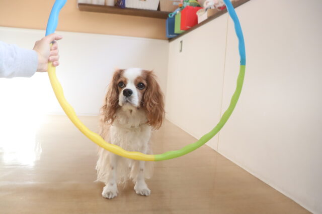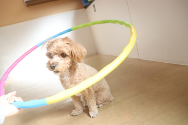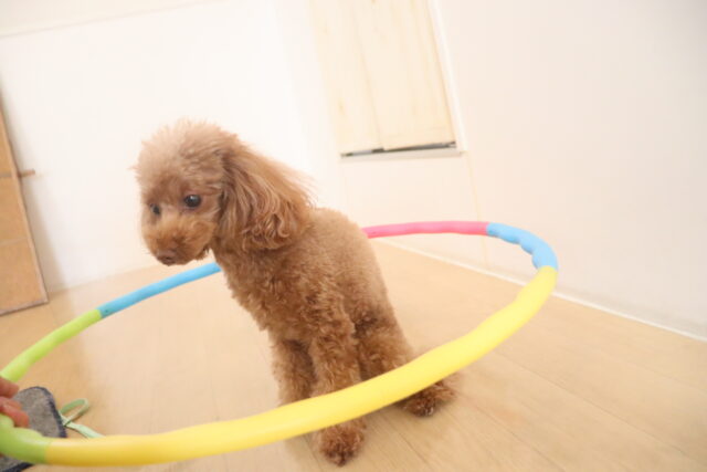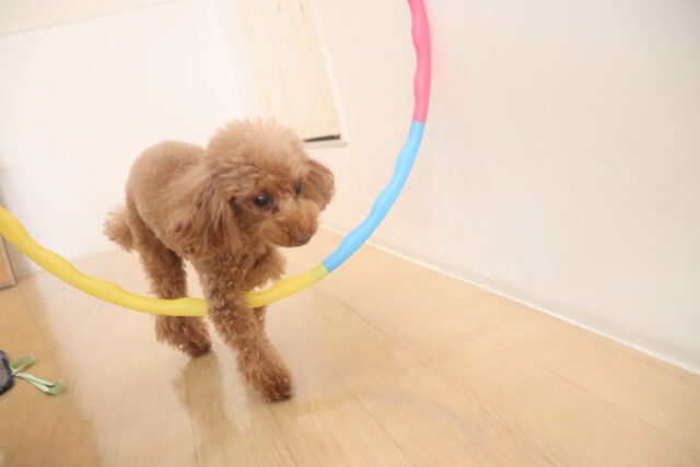 動くフラフープはまだ少し苦手そうですが、「頑張らなきゃ!」という姿勢を見せてくれるようになってきています!