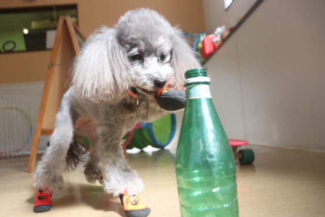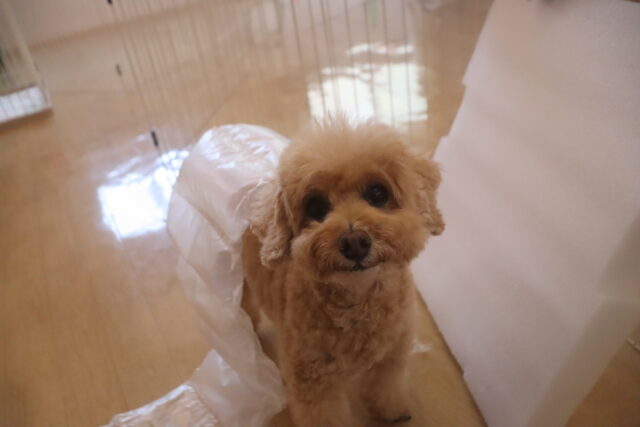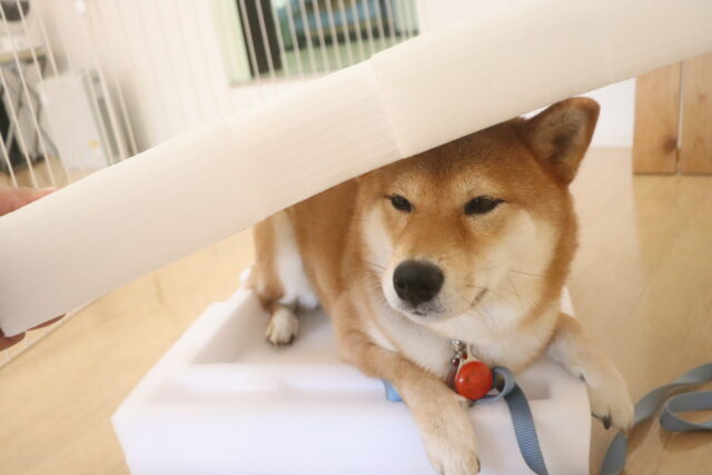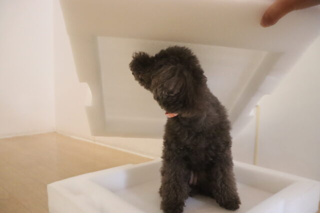 ココちゃん、ポチちゃんは発泡スチロールで物慣れをしています!