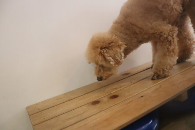 筋トレもしました!揺れる足場にちょっと不安そうですが…