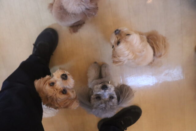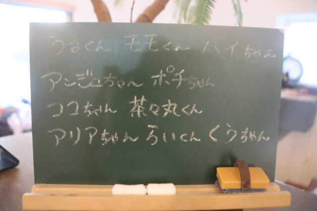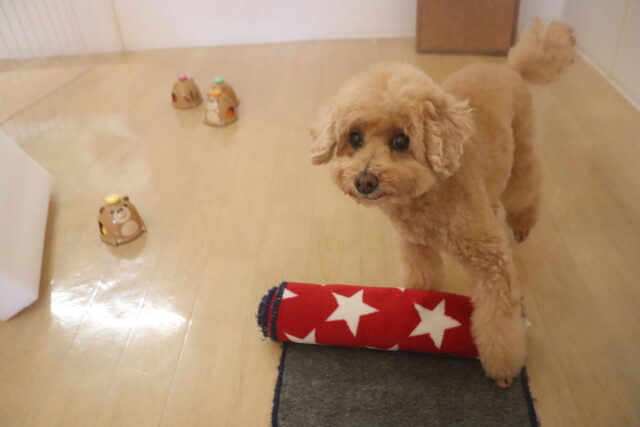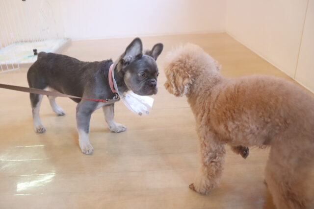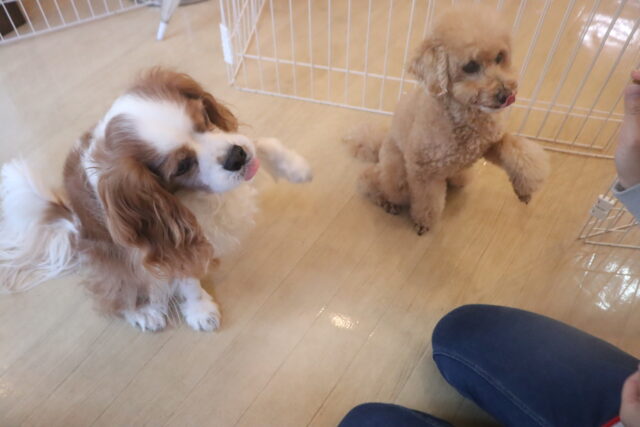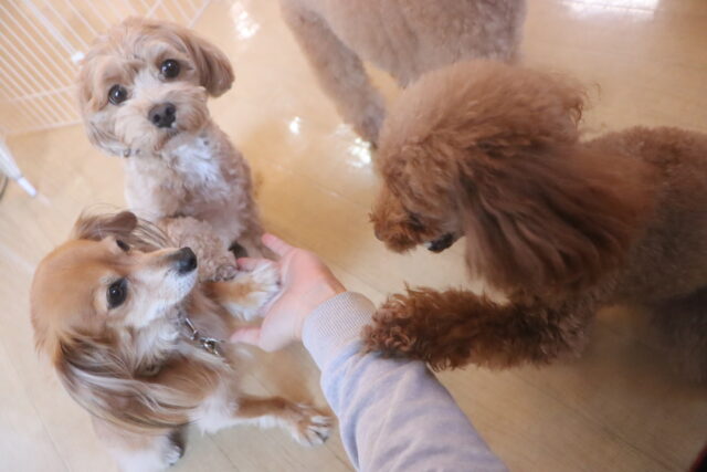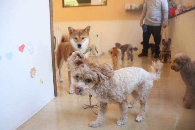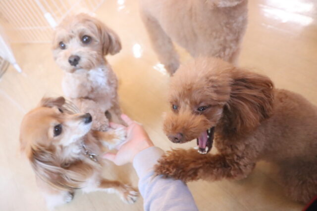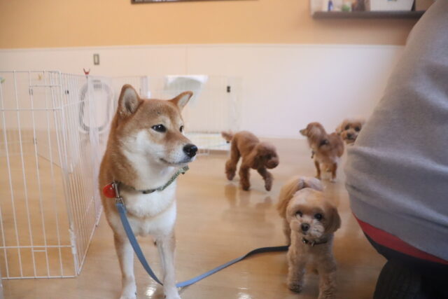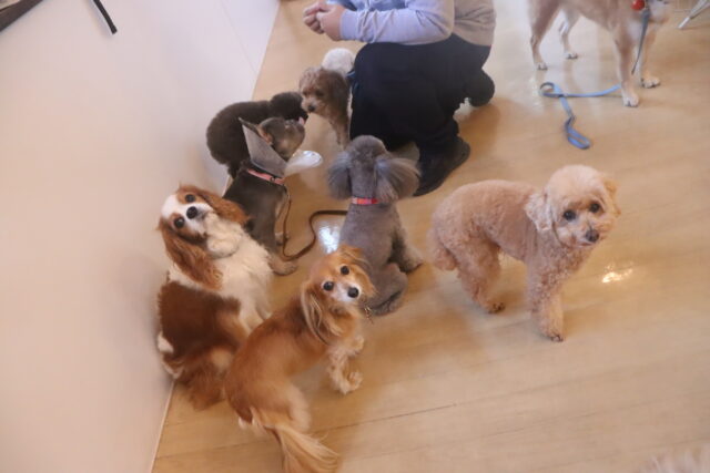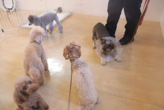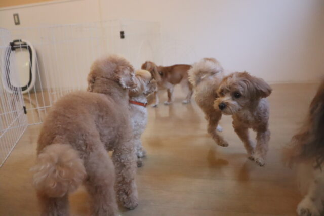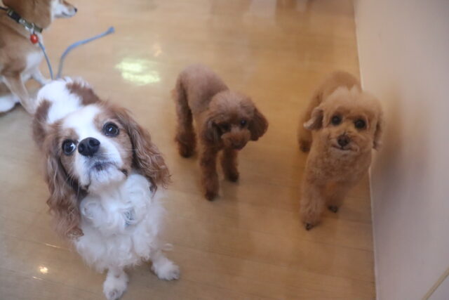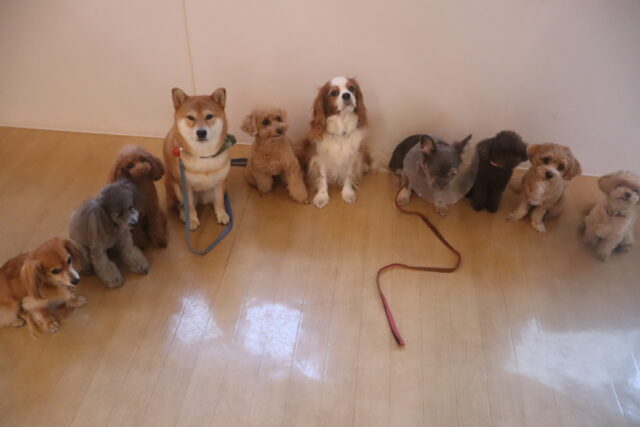 今日の保育園生は、キャバリアキングチャールズスパニエルの茶々丸くん、マルチーズ×トイプードルのうるくん・アリアちゃん、トイプードルのココちゃん・くうちゃん・アンジュちゃん・モモくん、フレンチブルドッグのハイちゃん、チワワ×ミニチュアダックスフンドのらいくん、柴犬のポチちゃんです!