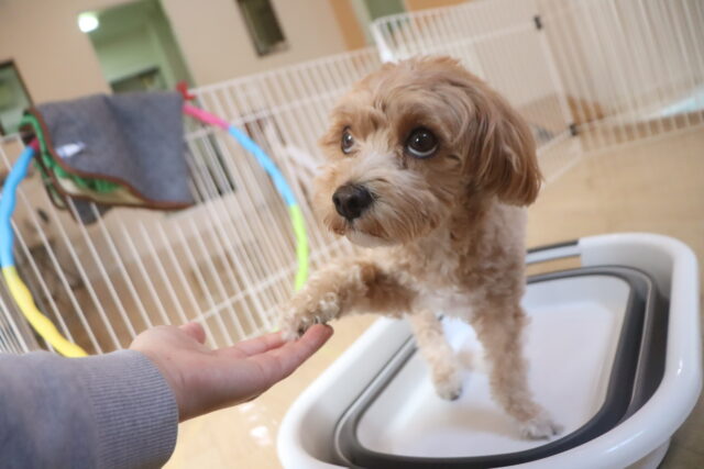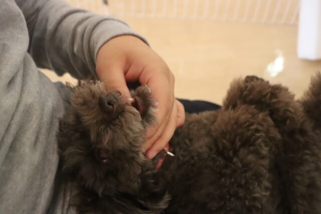 どのスタッフとでも落ち着いていられるようになってきたポチちゃん!