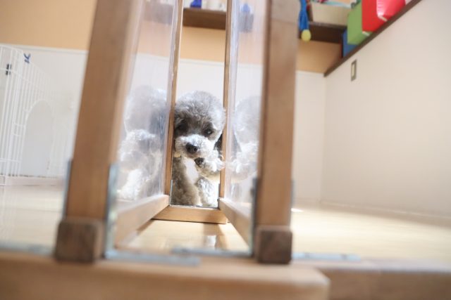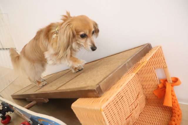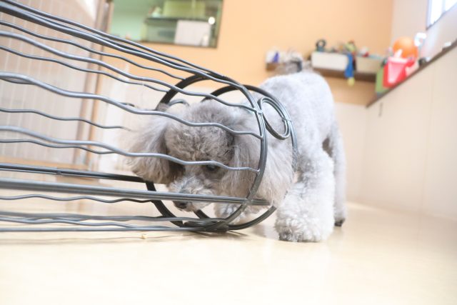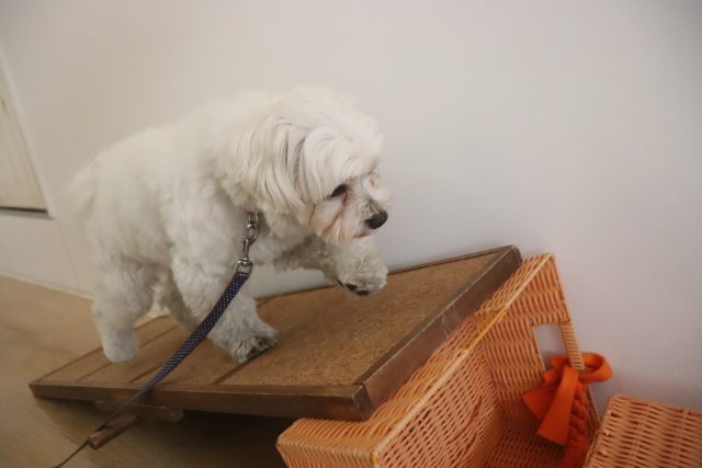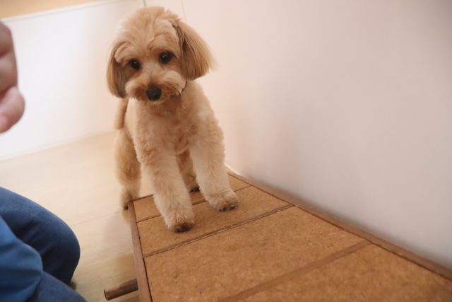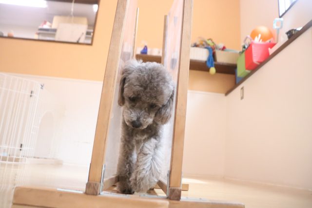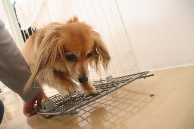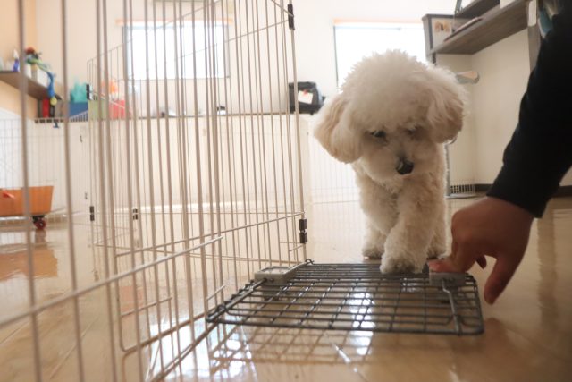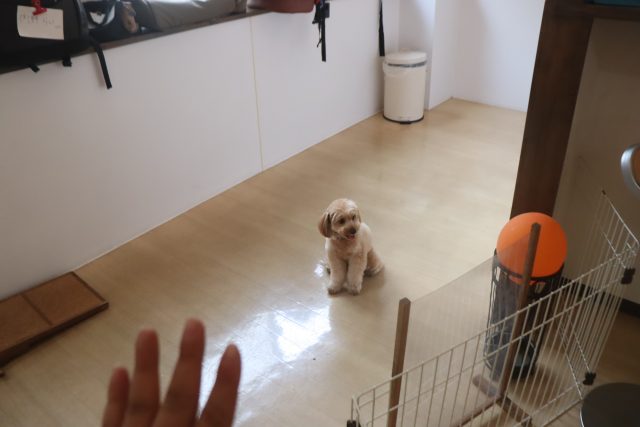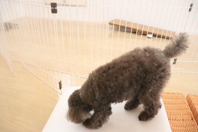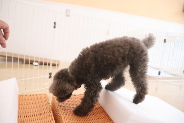 陽向くんはクレートのドアで足場慣れも引き続き頑張っていますよ!