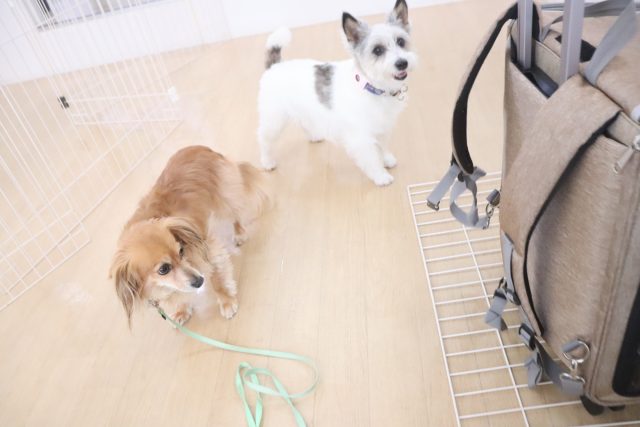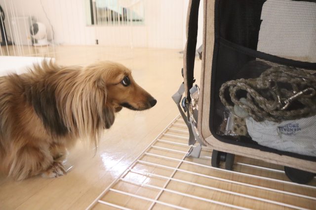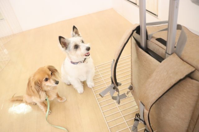 ラテちゃんはキャリーケースのタイヤ音慣れをしてみました!