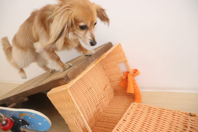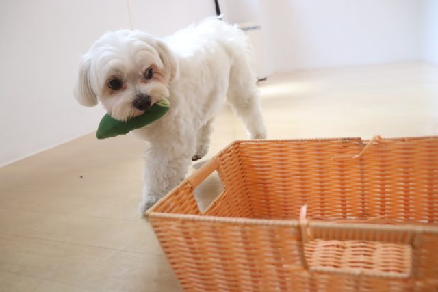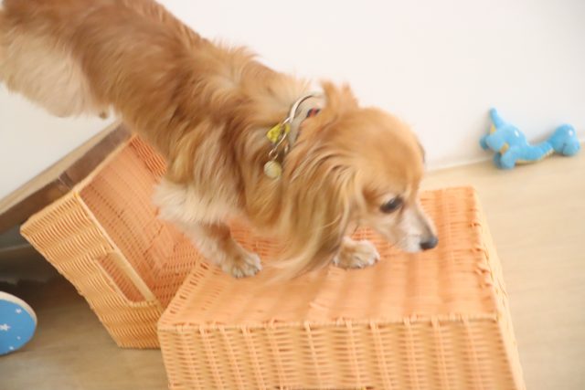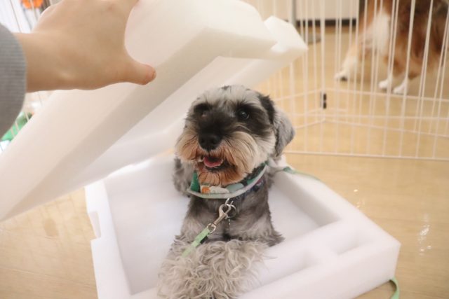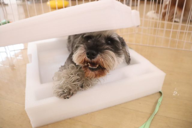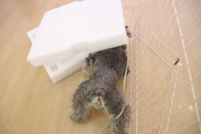 ココちゃん、レイアちゃんは発泡スチロールで物慣れをしています!