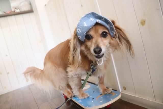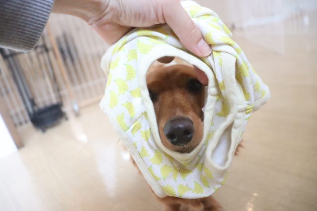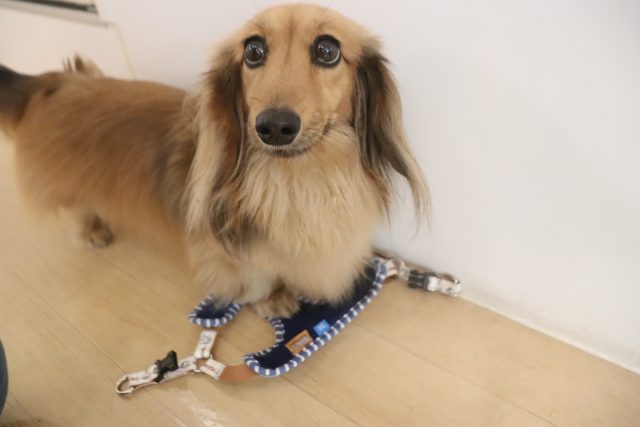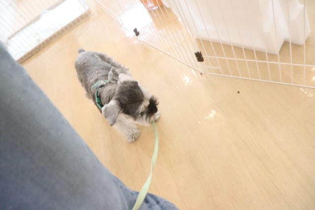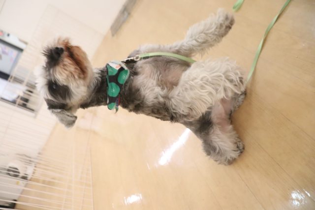 みるもちゃんは洋服、ハーネスに慣れる練習もしました!