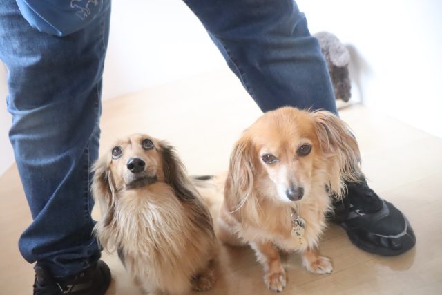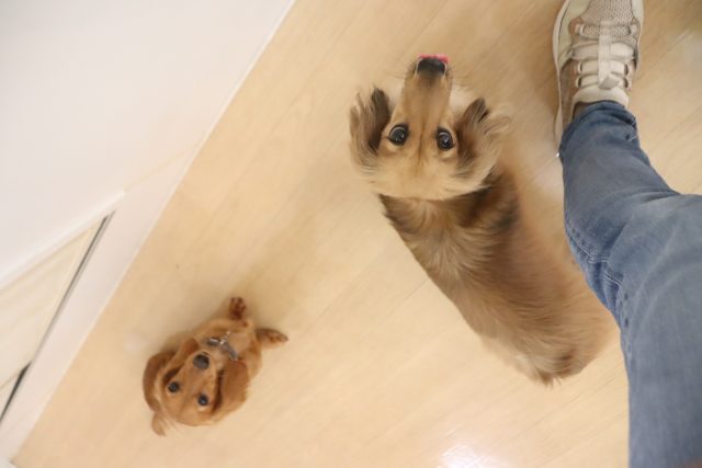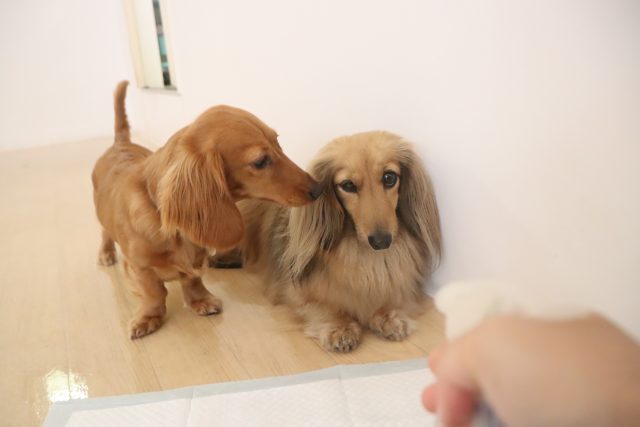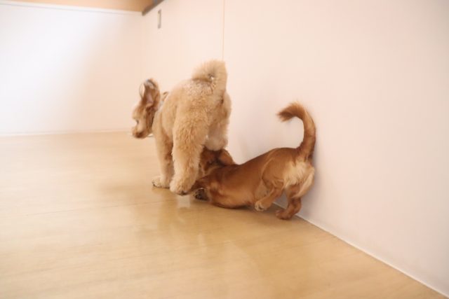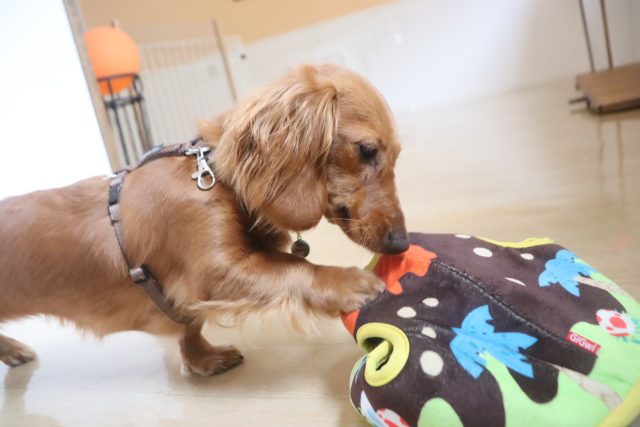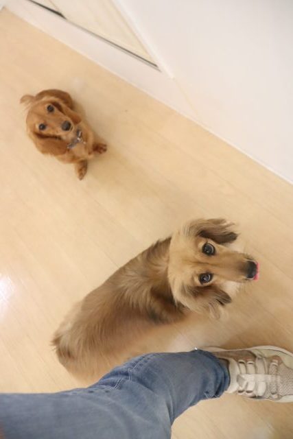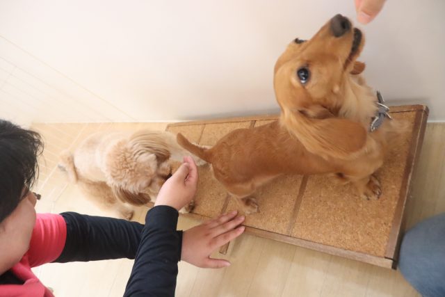 前回の慣れの練習の効果もあり、前足や鼻を駆使して見事フードをGET出来た2頭でした✨\(^o^)/