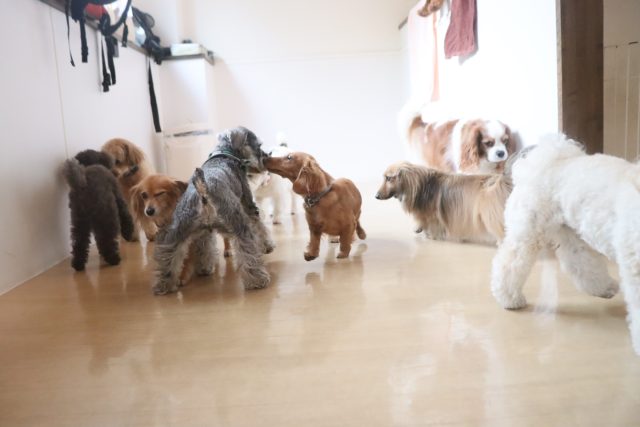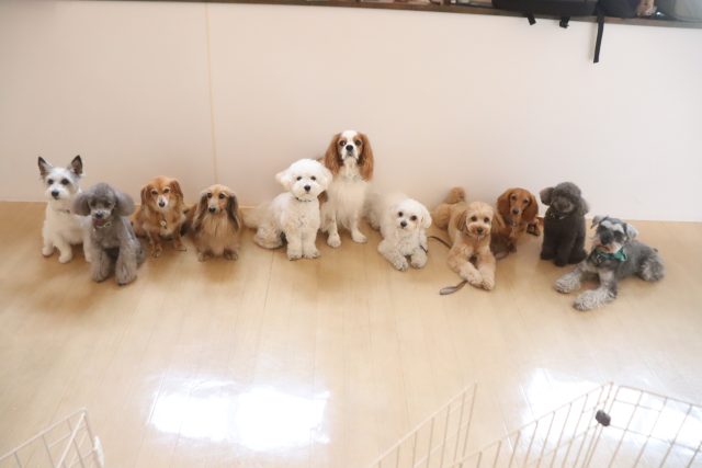 今日の保育園生は、マルチーズ×トイプードルの陽向くん、トイプードルのアンジュちゃん・ココちゃん、ジャックラッセルテリアのソフィちゃん、マルチーズのことぶきくん、チワワ×ミニチュアダックスフンドのらいくん、ミニチュアシュナウザーのレイアちゃん、キャバリアキングチャールズスパニエルの茶々丸くん、カニンヘンダックスフンドのラテちゃん、ポメラニアン×トイプードルのエマちゃん、ミニチュアダックスフンドのみるもちゃんです!