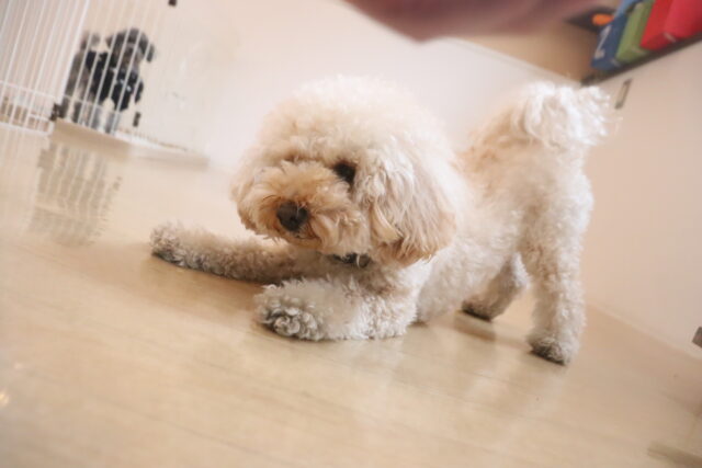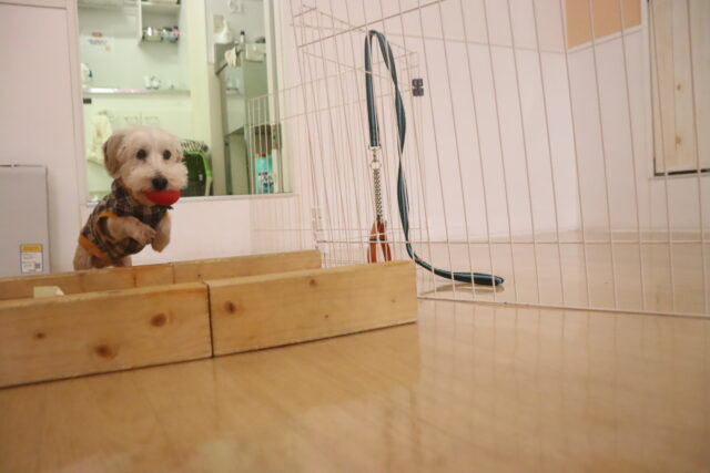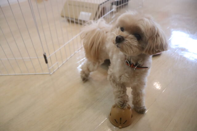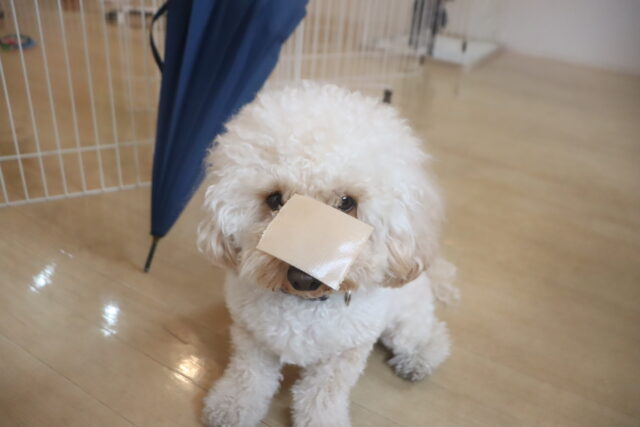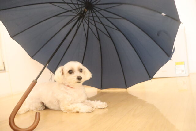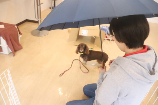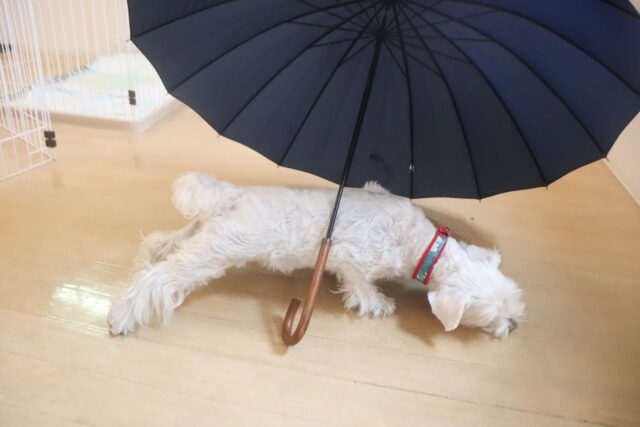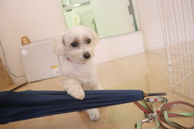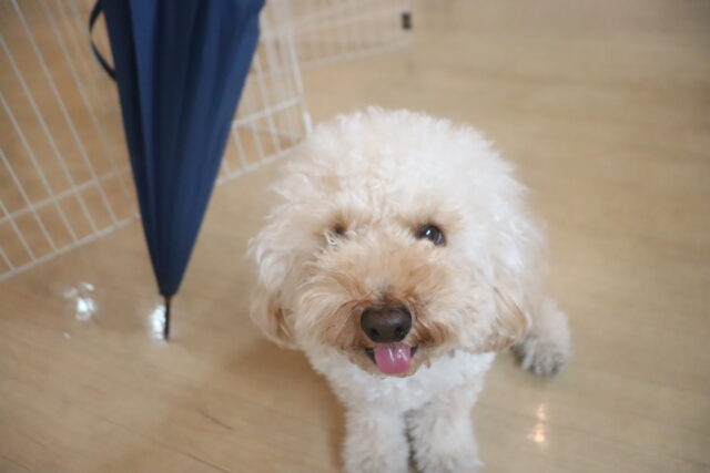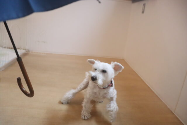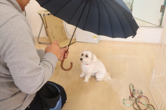 スタッフが傘を動かすと急にオドオドしてしまうので、引き続き慣れの練習頑張ろうね💪