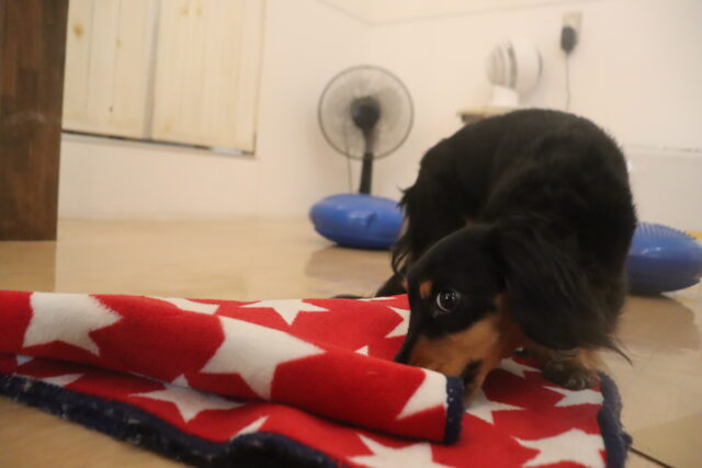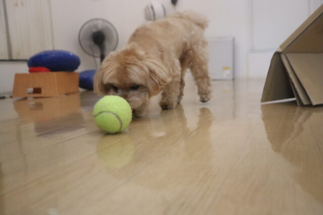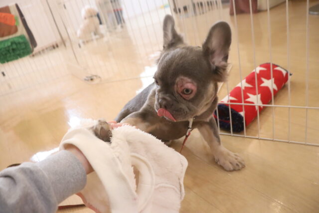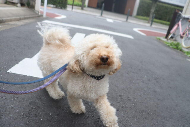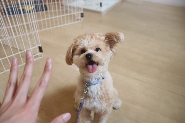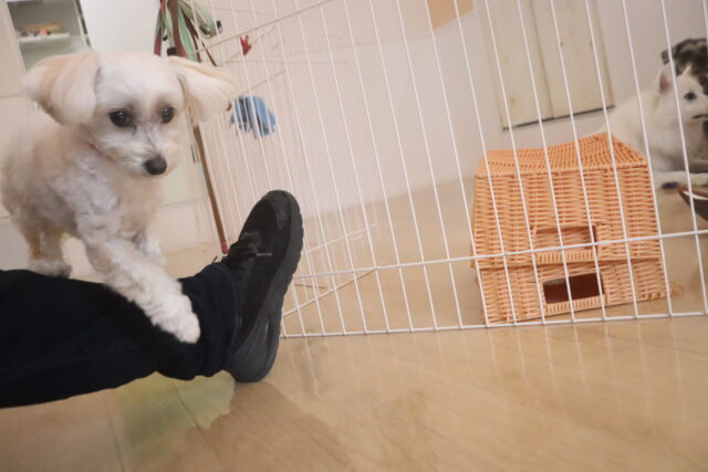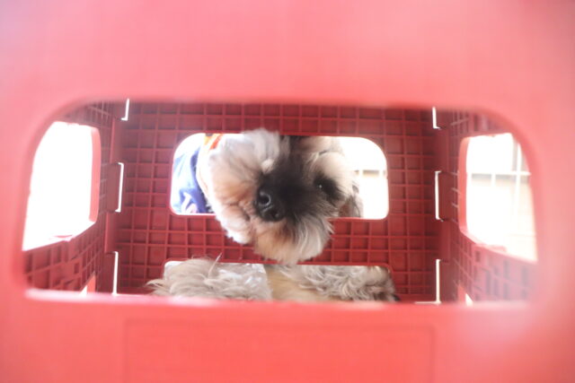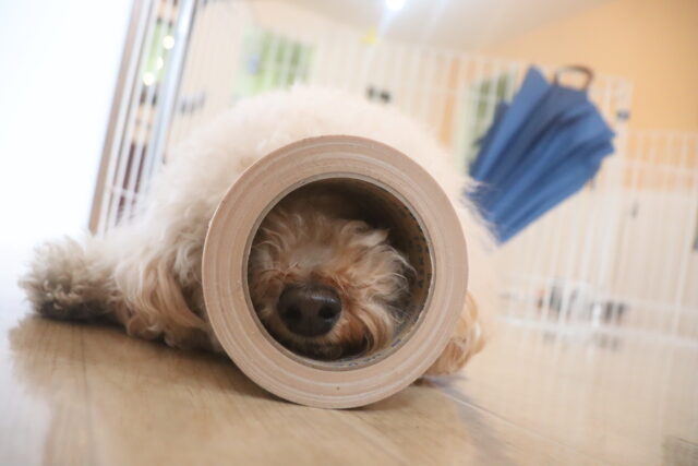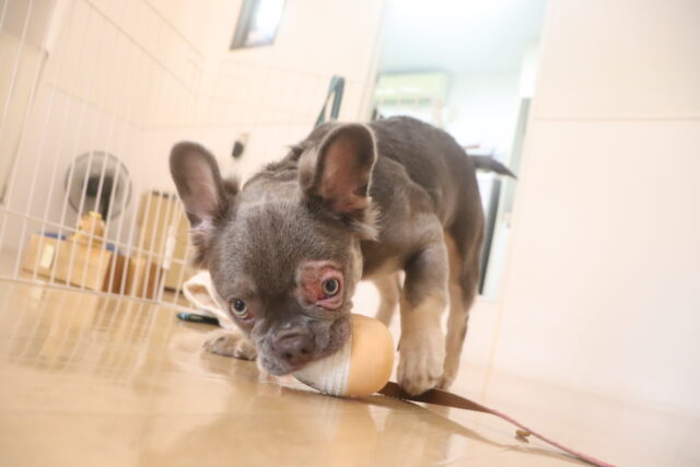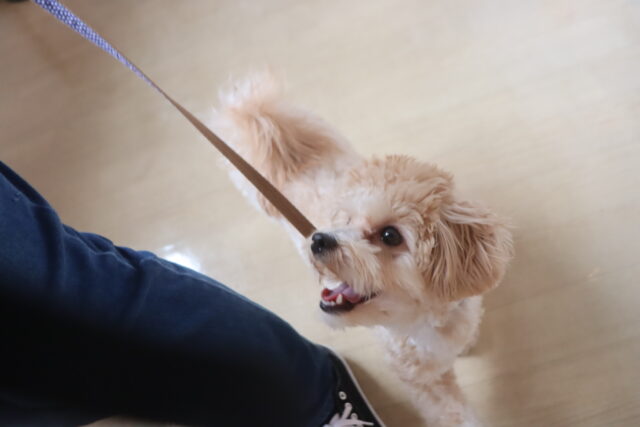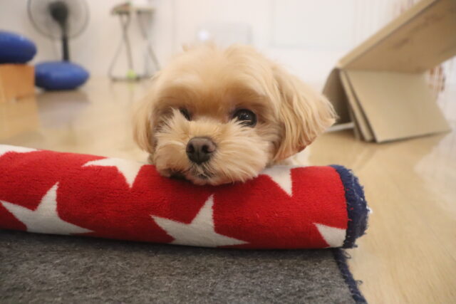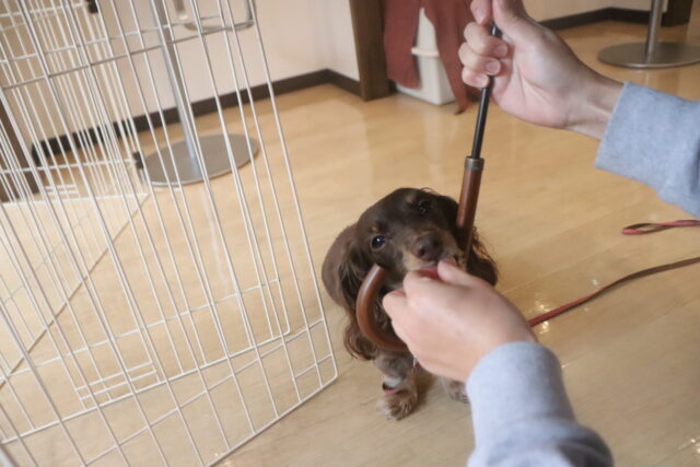 スタッフが傘を動かすと急にオドオドしてしまうので、引き続き慣れの練習頑張ろうね💪