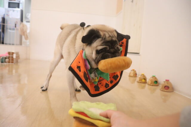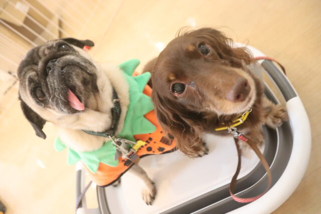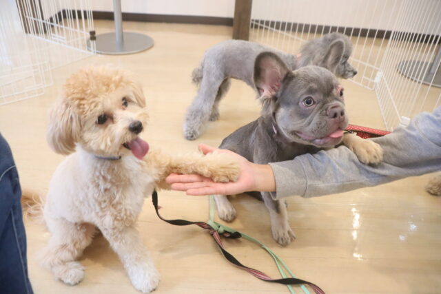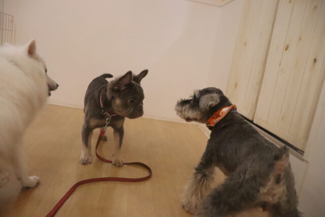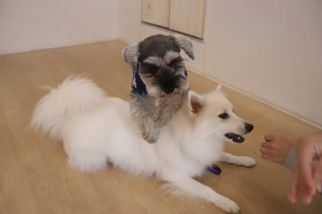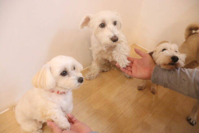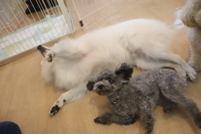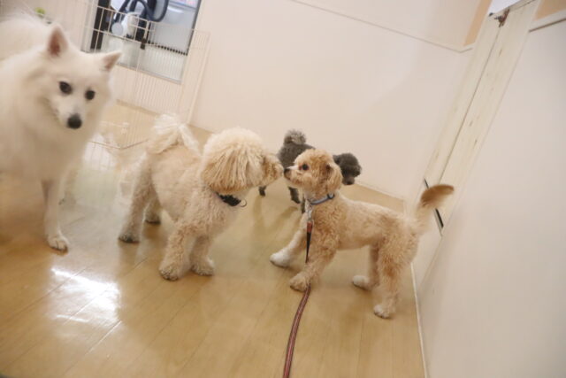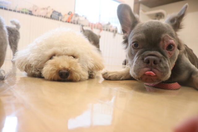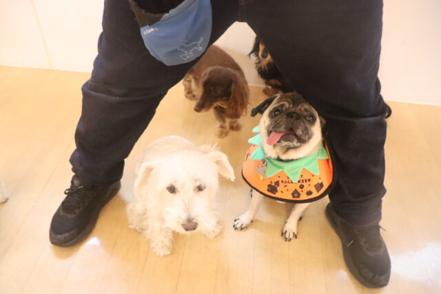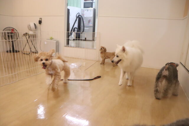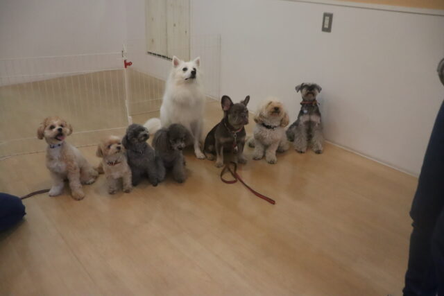 今日の保育園生は、パグのカールくん、ワイヤーヘアードミニチュアダックスフンドの小梅ちゃん、ミニチュアダックスフンドのミーシャちゃん、トイプードルのアンジュちゃん・モモちゃん、ミニチュアシュナウザーのソランちゃん・レイアちゃん、カニンヘンダックスフンドのここみちゃん、マルチーズ×トイプードルのうるくん・きなこちゃん・晴くん・アンディくん、スピッツのパブロンくん、フレンチブルドッグのハイちゃんです!