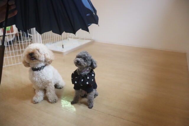 ミーシャちゃんとソランちゃんは傘慣れをしました!