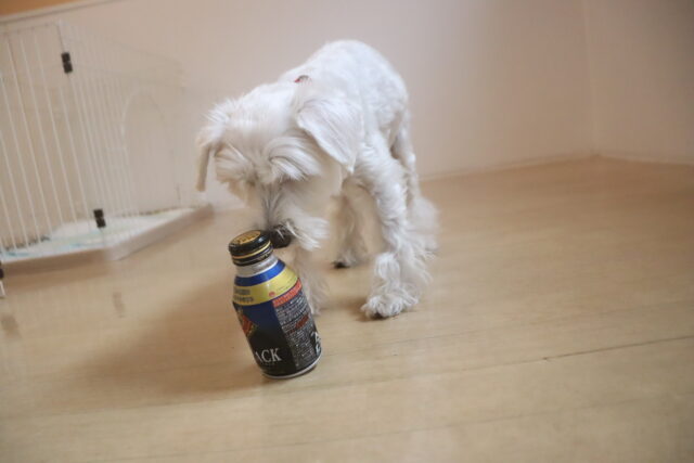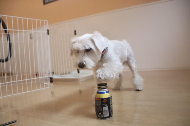 ソランちゃんは”缶倒し”に挑戦!