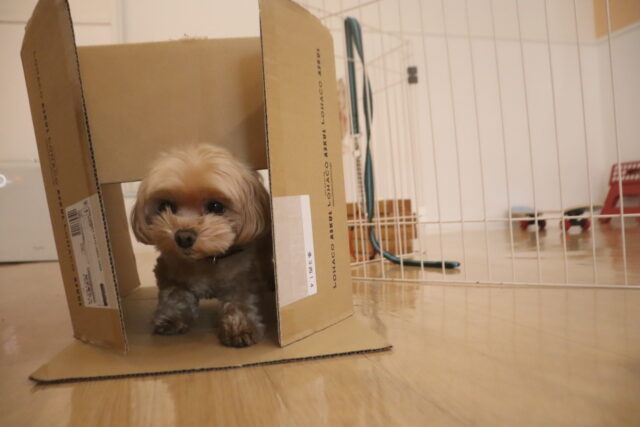 アンジュちゃんはダンボールくぐりをしました!