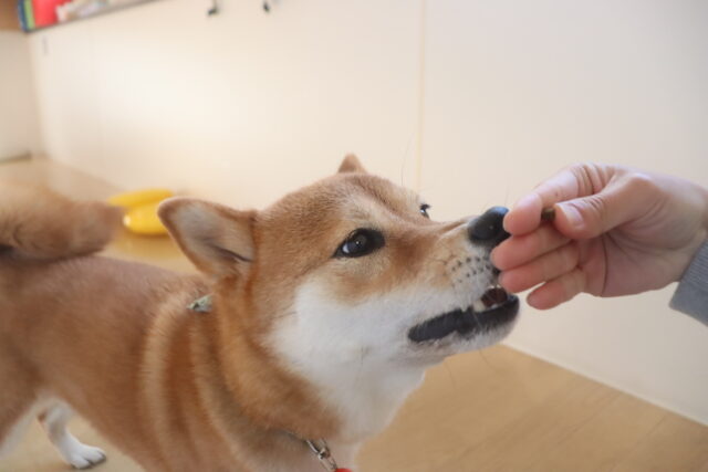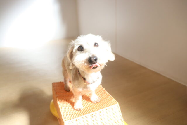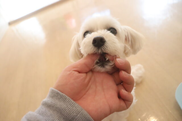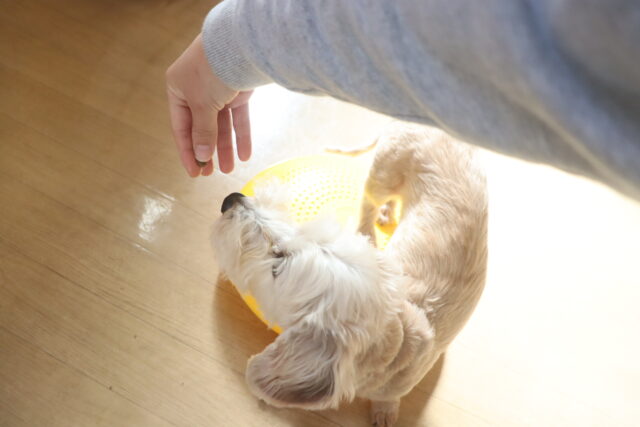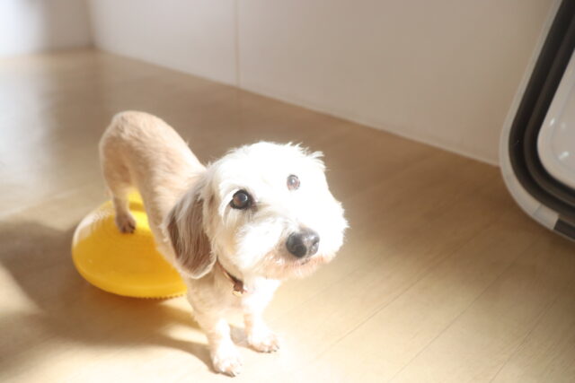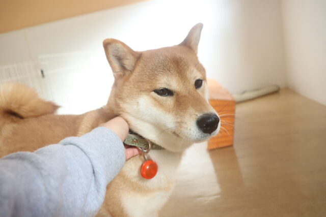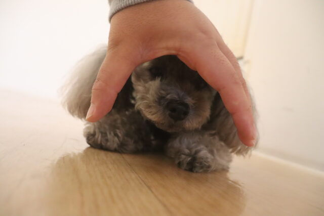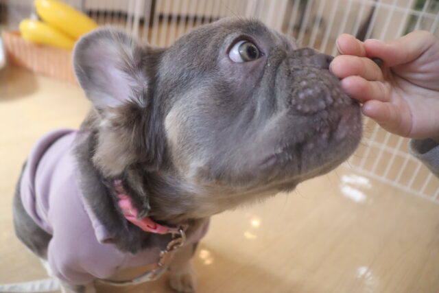 体を触られる練習では尻尾を掴んで揺さぶると流石に気になる様子でしたが、その他は何をされても仏のようなポチちゃん!