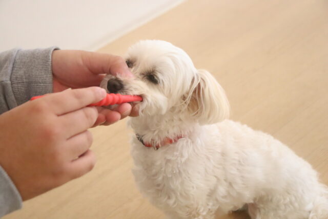 きなこちゃんはお手入れ練習や洋服を着る練習もしたね!
