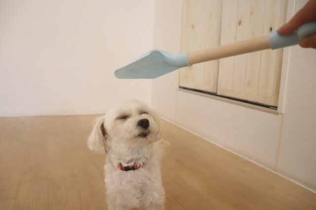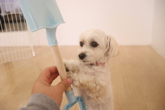 きなこちゃん、アンジュちゃんはオモチャのスコップで物慣れをしました!
