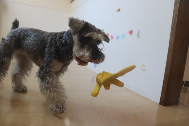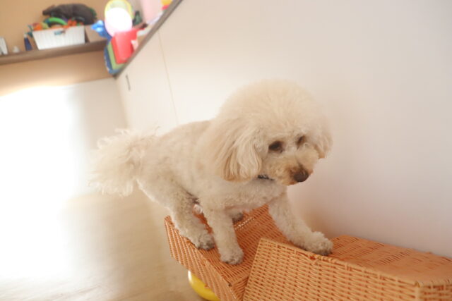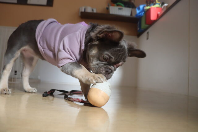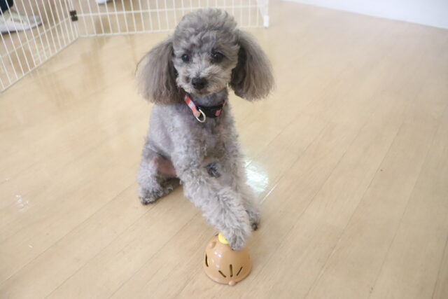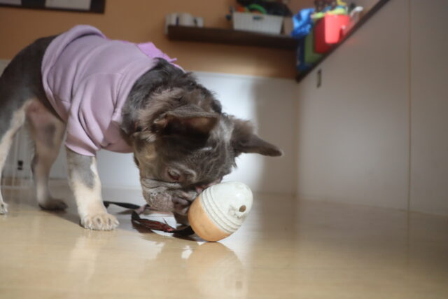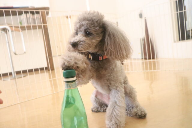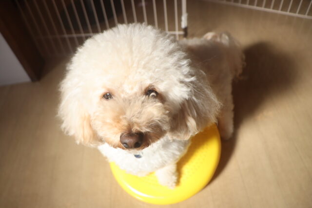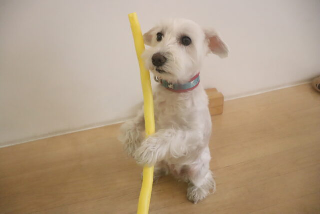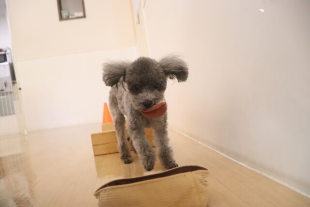 難易度の高い板をまたぎながらでも、咥えたおもちゃは放さないモモちゃん✨