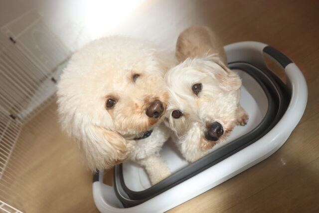 ちょっと狭かったのか身を寄せ合う姿も可愛い2頭♡