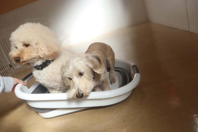 晴くん、小梅ちゃんはバスタブ慣れをしました!