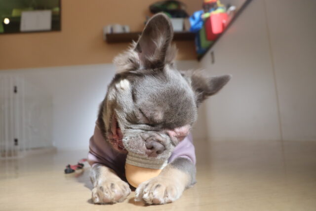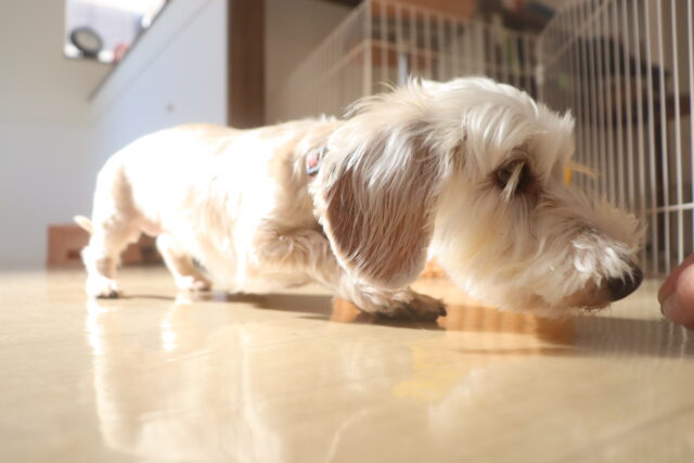 最終的には前足を使うという発想にたどり着き、上手にフードをGET出来て嬉しそうでしたよヽ(^。^)ノ