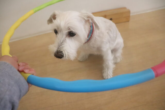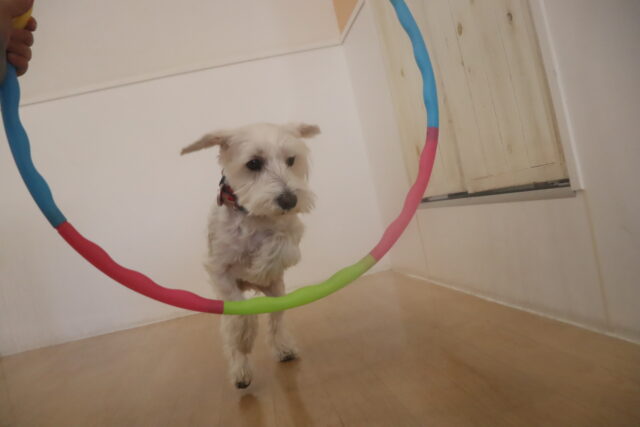 慣れてくればビニールで作った輪の中をくぐることが出来ました♪