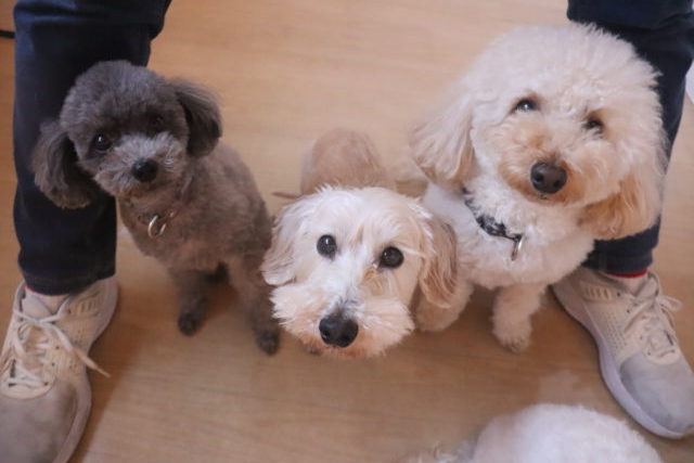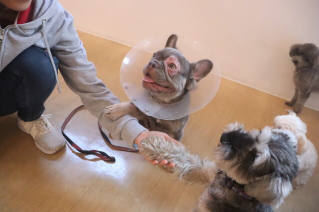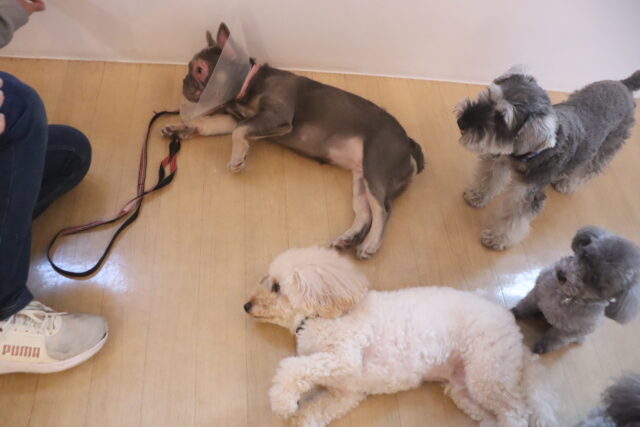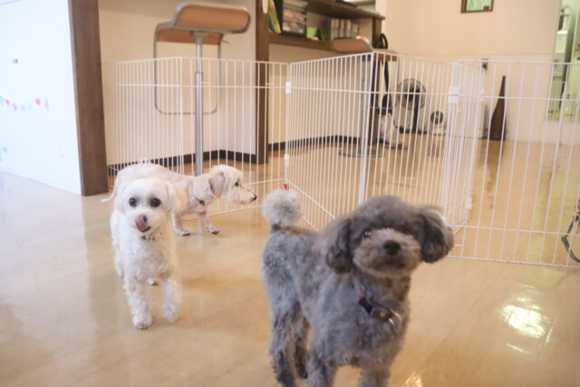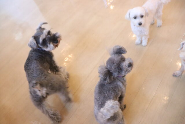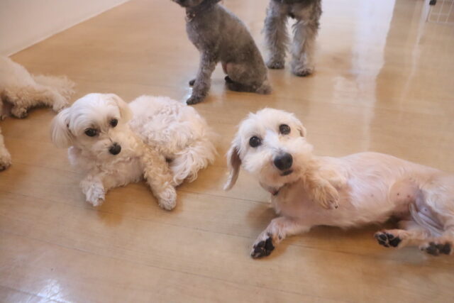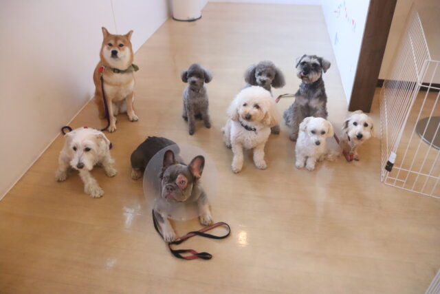 今日の保育園生は、柴犬のポチちゃん、マルチーズ×トイプードルのきなこちゃん・晴くん、トイプードルのアンジュちゃん・モモちゃん、ワイヤーヘアードミニチュアダックスフンドの小梅ちゃん、ミニチュアシュナウザーのソランちゃん・レイアちゃん、フレンチブルドッグのハイちゃんです!