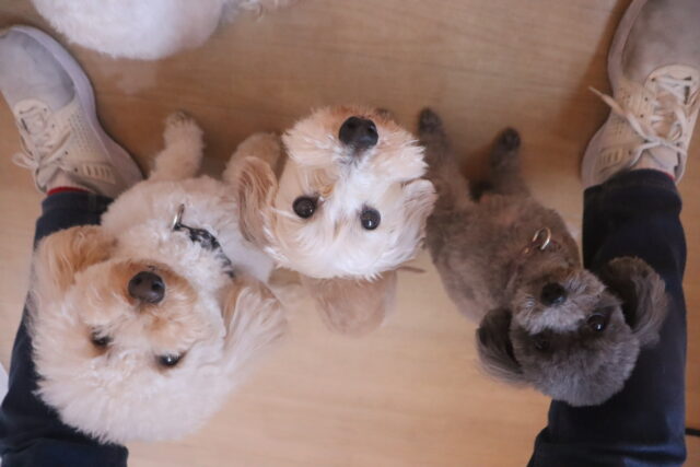 今日の保育園生は、柴犬のポチちゃん、マルチーズ×トイプードルのきなこちゃん・晴くん、トイプードルのアンジュちゃん・モモちゃん、ワイヤーヘアードミニチュアダックスフンドの小梅ちゃん、ミニチュアシュナウザーのソランちゃん・レイアちゃん、フレンチブルドッグのハイちゃんです!