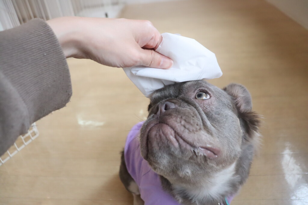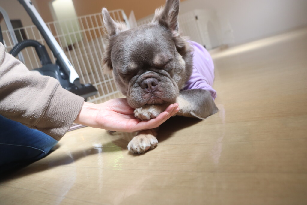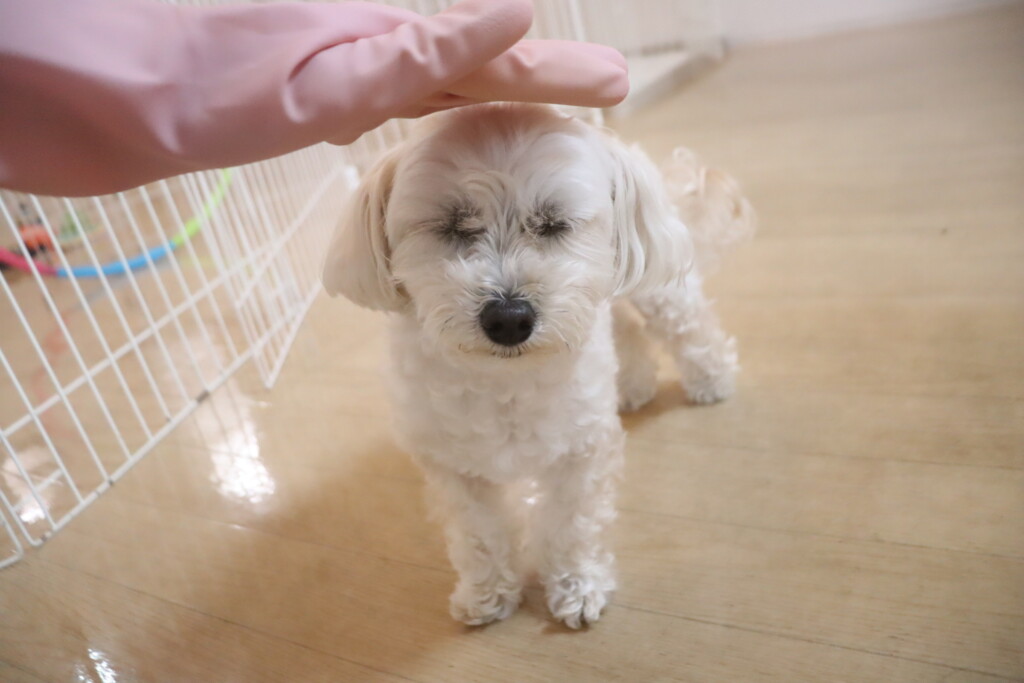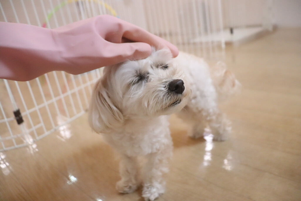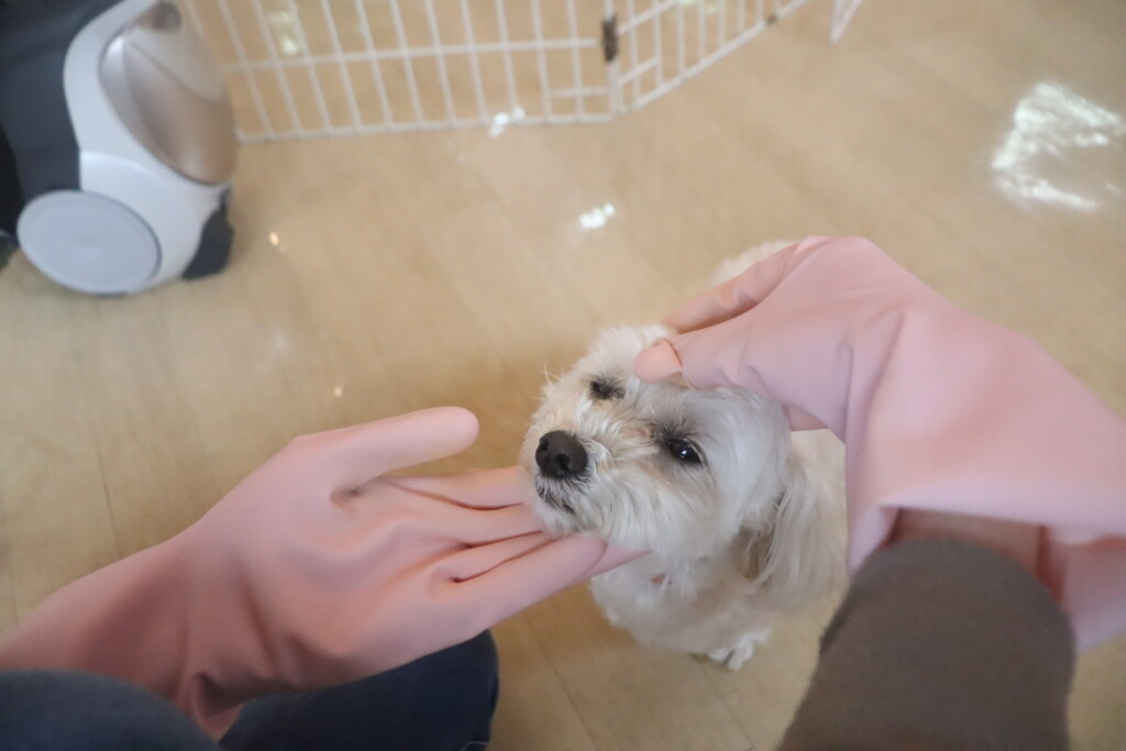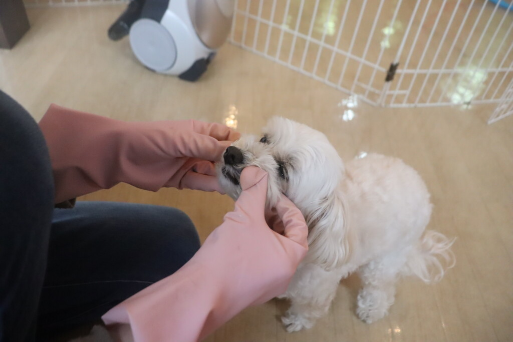 ゴム手袋で物慣れもするとなぜか目を瞑ってしまうきなこちゃんでしたが、