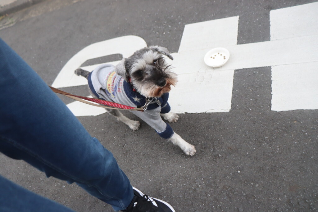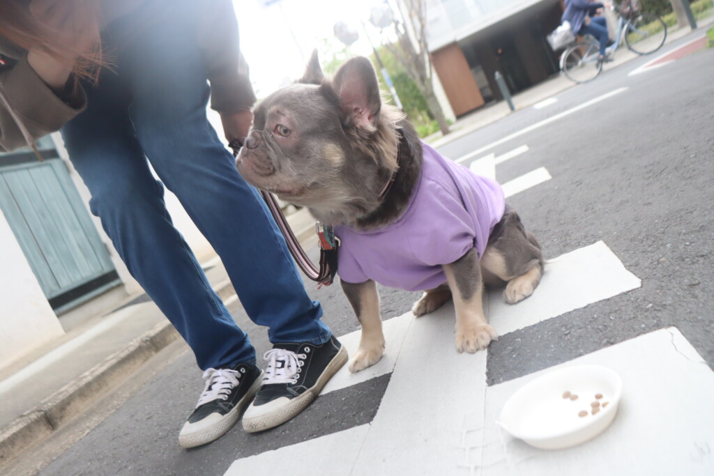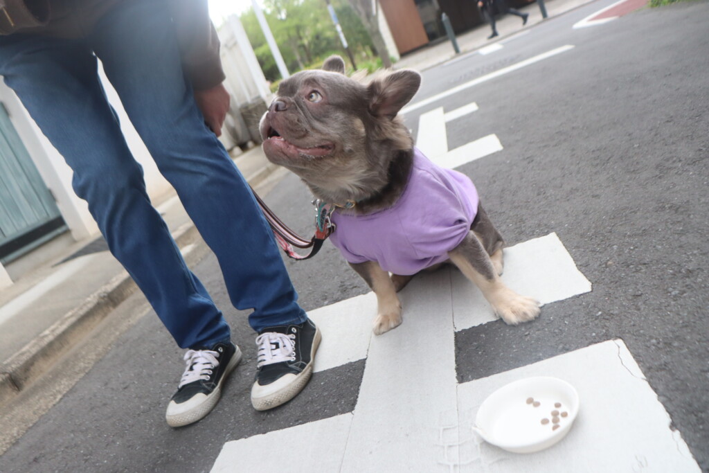 お外ではフードの誘惑がある中で基本トレーニングにも挑戦!