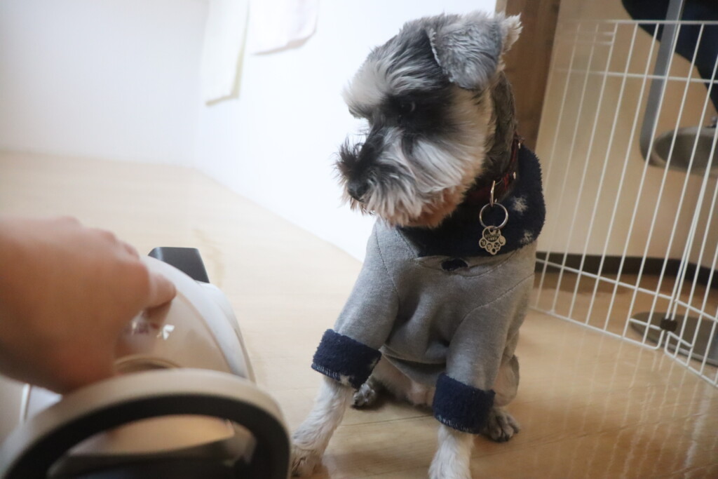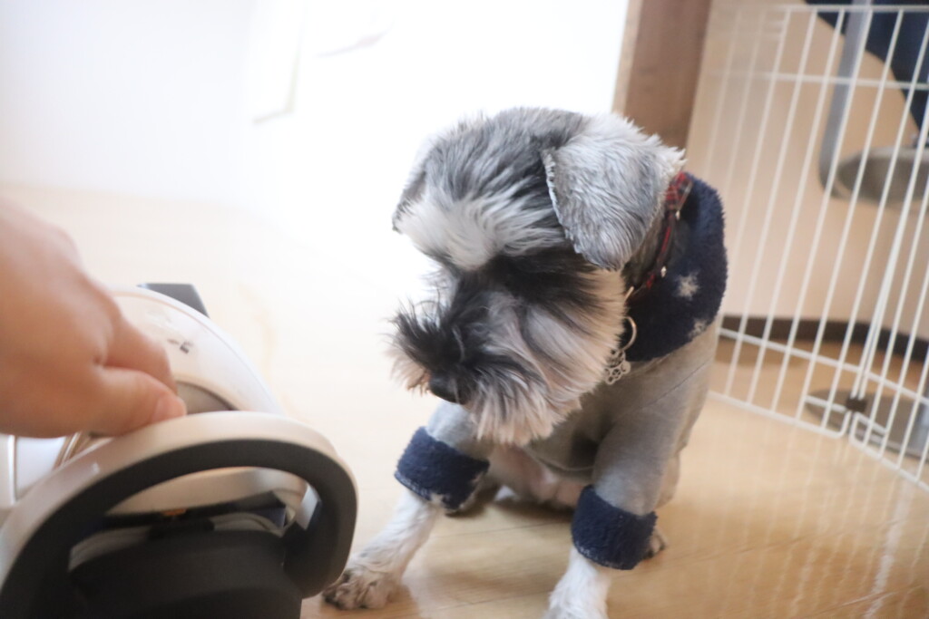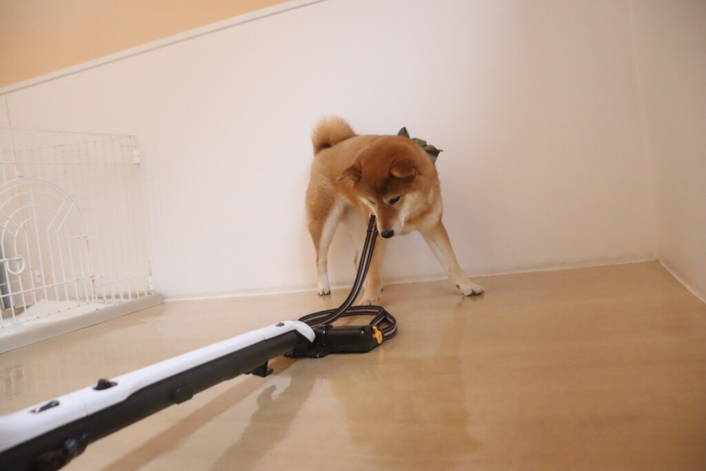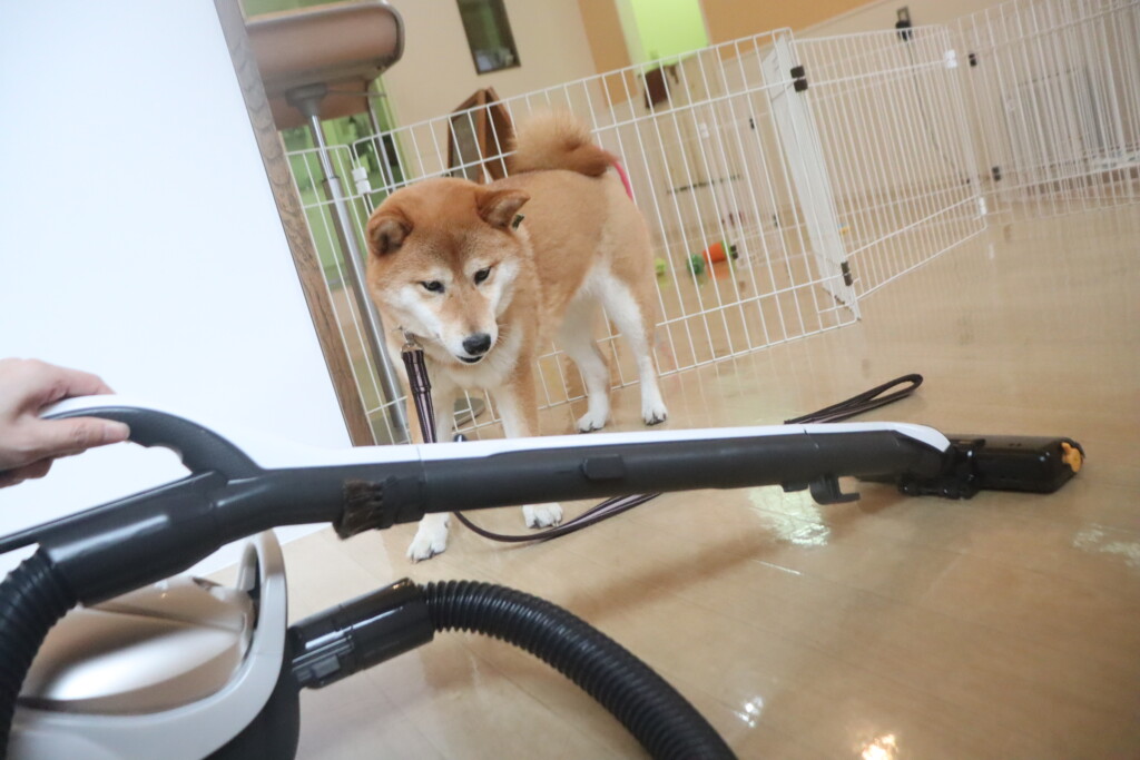 掃除機自体にはだいぶ慣れてきたハイちゃんですが、