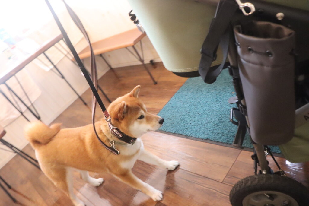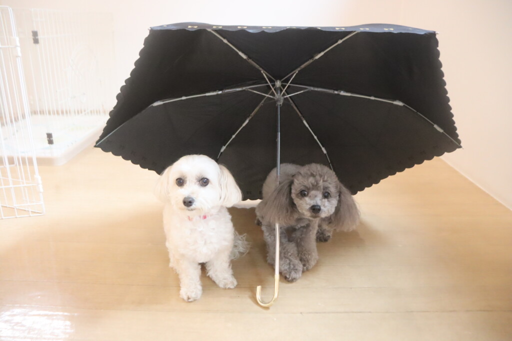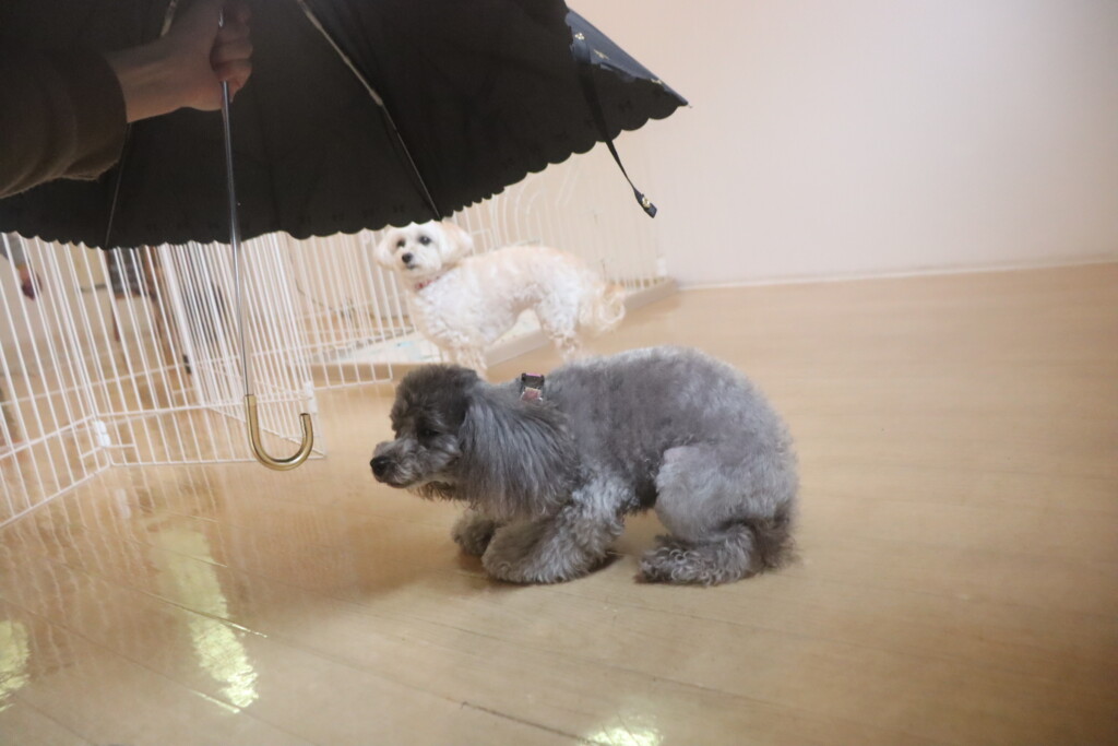 アンジュちゃんはきなこちゃんと傘慣れをしましたよ!
