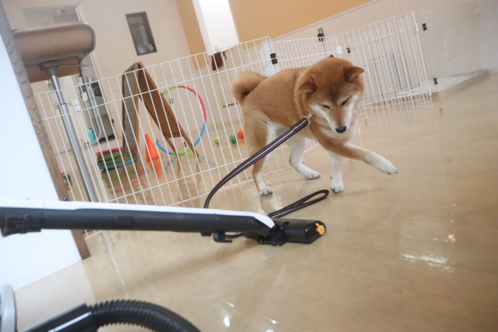 ポチちゃんはまだまだ掃除機の動きに翻弄されています(⊙o⊙)