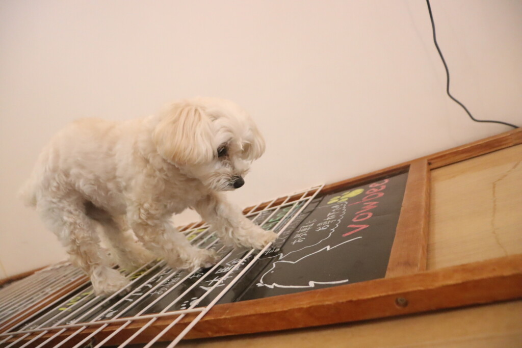 アンディくん、モモちゃん、ことぶきくん、きなこちゃん、ラテちゃん、小梅ちゃんは足場慣れ・音慣れを行っています!