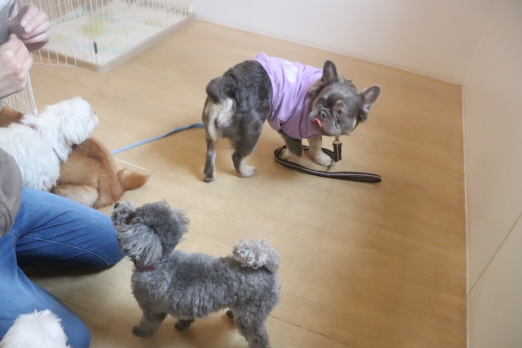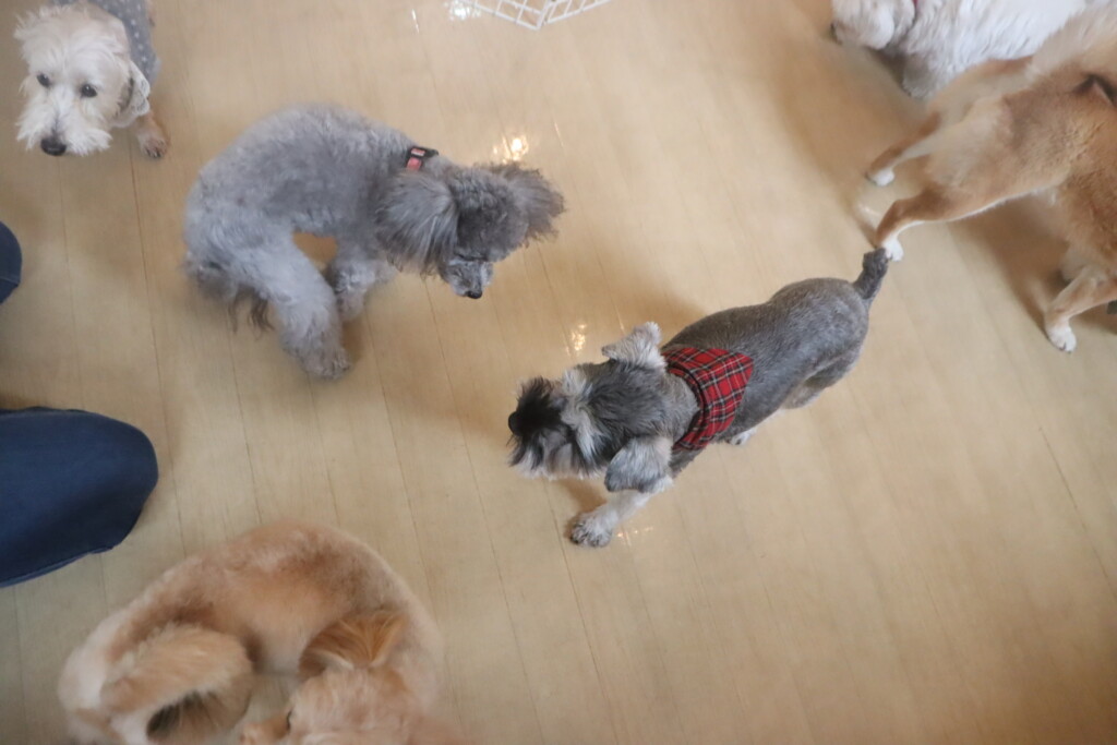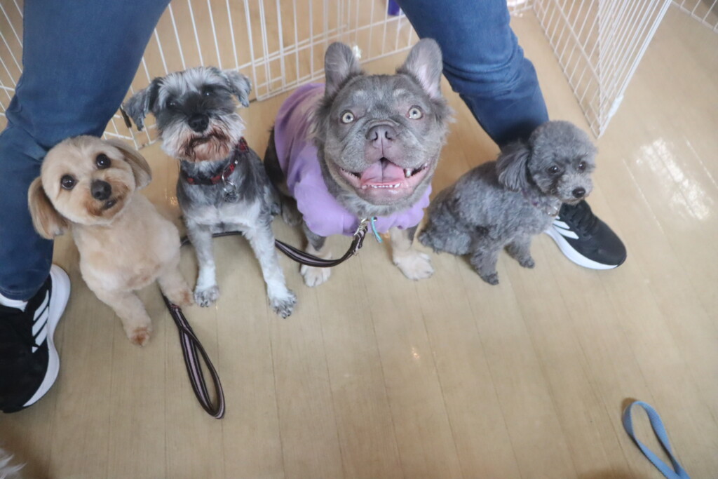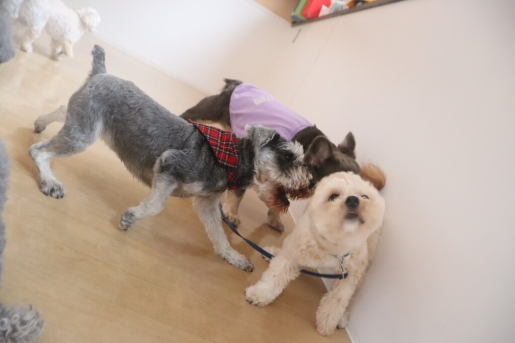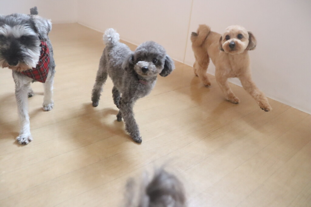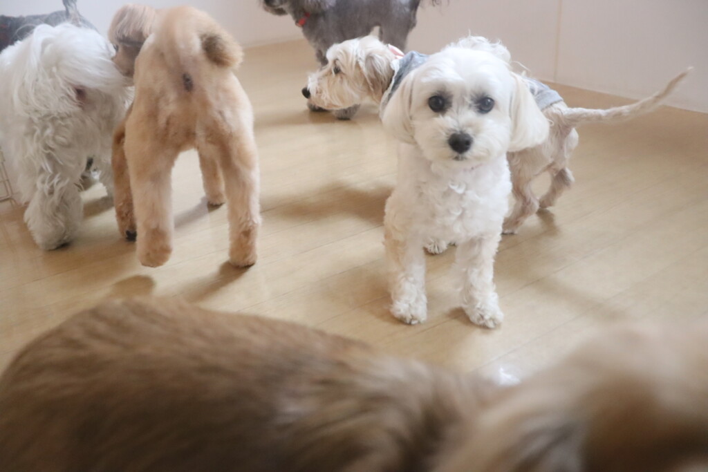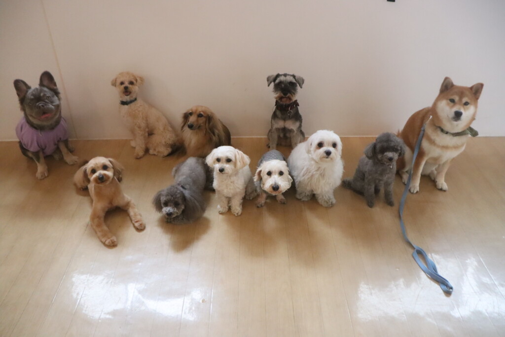 今日の保育園生は、フレンチブルドッグのハイちゃん、ミニチュアシュナウザーのレイアちゃん、柴犬のポチちゃん、マルチーズ×トイプードルのアンディくん・きなこちゃん、トイプードルのモモちゃん・アンジュちゃん、マルチーズのことぶきくん、カニンヘンダックスフンドのラテちゃん、ワイヤーヘアードミニチュアダックスフンドの小梅ちゃんです!