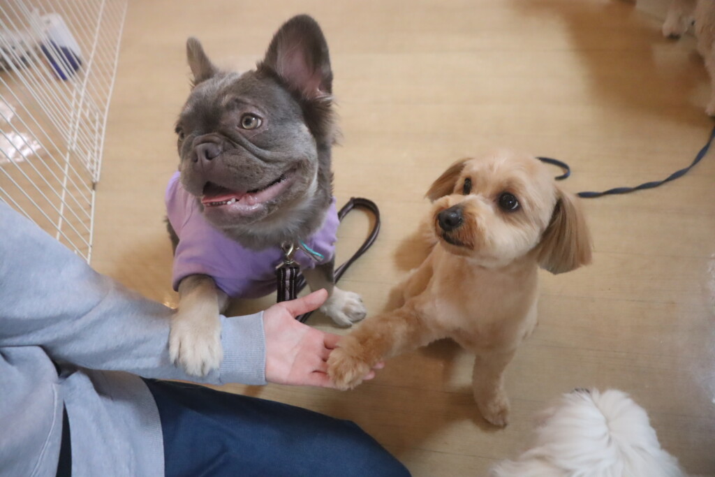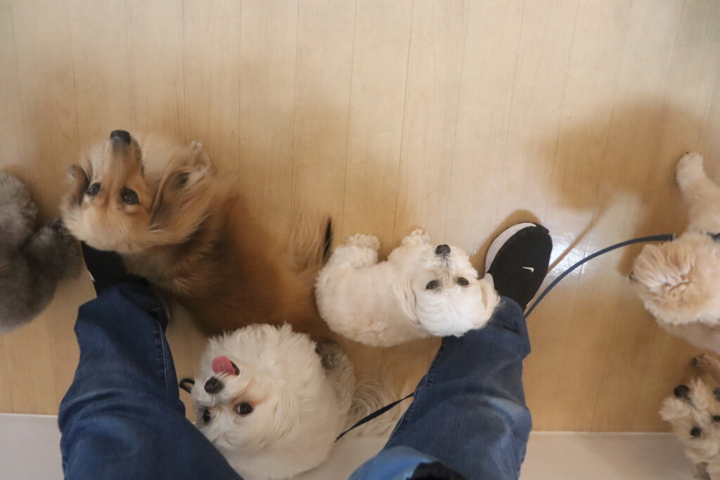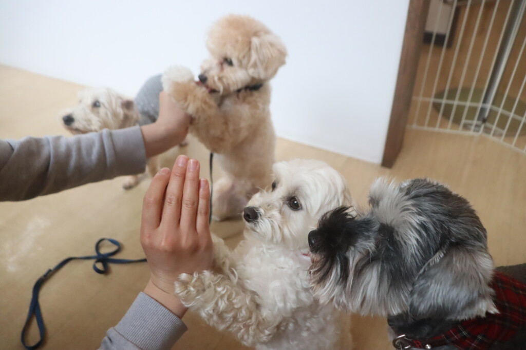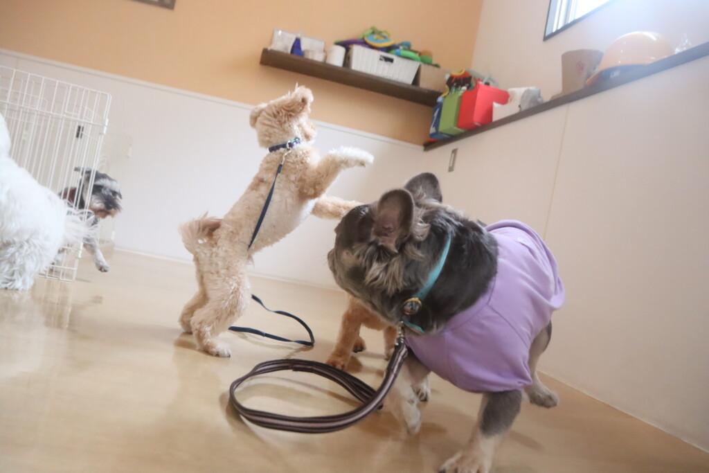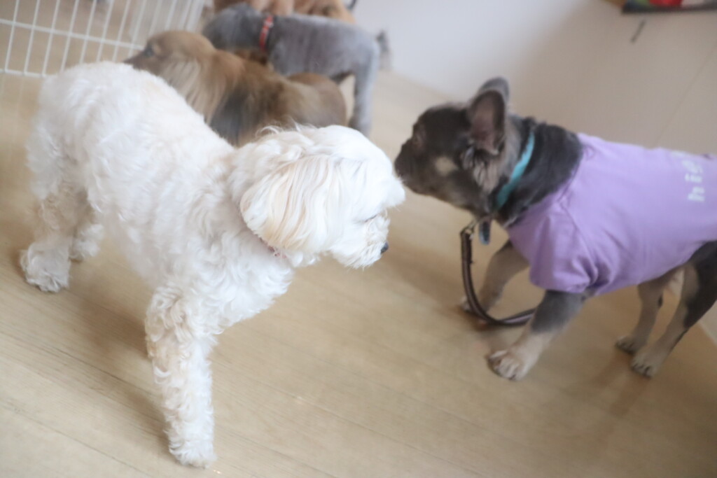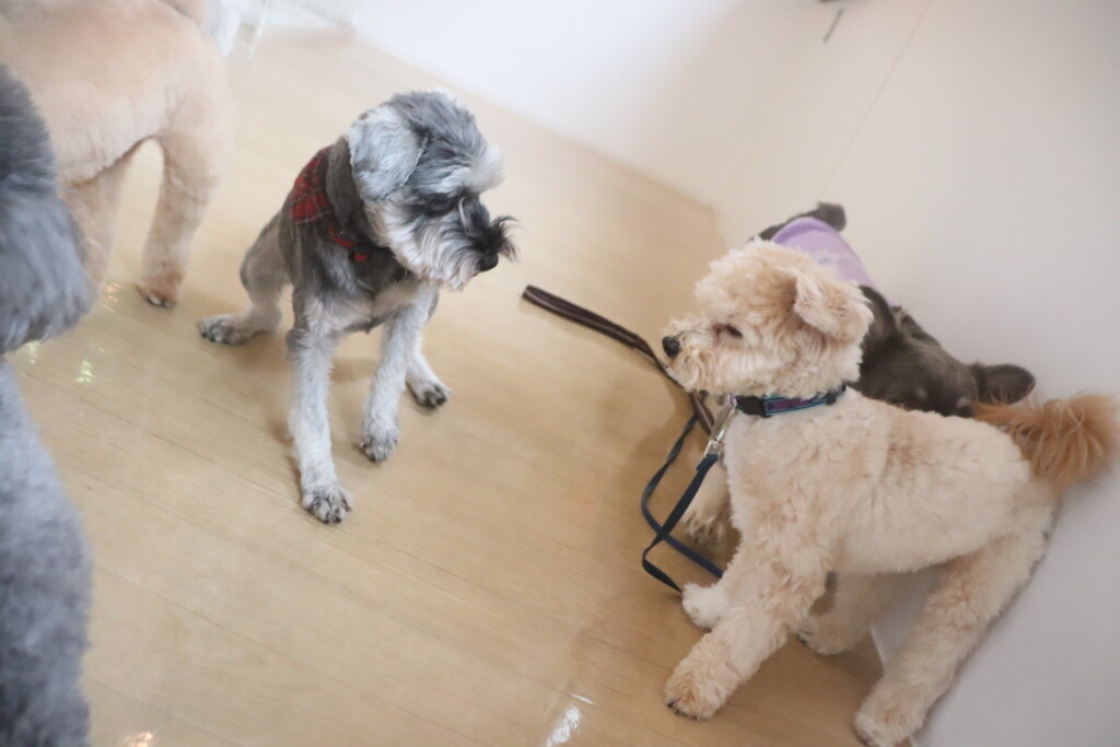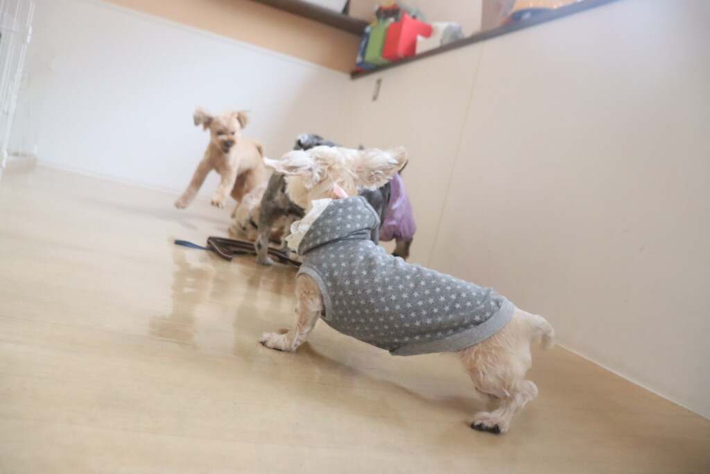 今日の保育園生は、フレンチブルドッグのハイちゃん、ミニチュアシュナウザーのレイアちゃん、柴犬のポチちゃん、マルチーズ×トイプードルのアンディくん・きなこちゃん、トイプードルのモモちゃん・アンジュちゃん、マルチーズのことぶきくん、カニンヘンダックスフンドのラテちゃん、ワイヤーヘアードミニチュアダックスフンドの小梅ちゃんです!