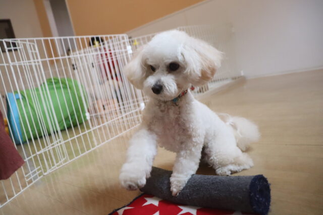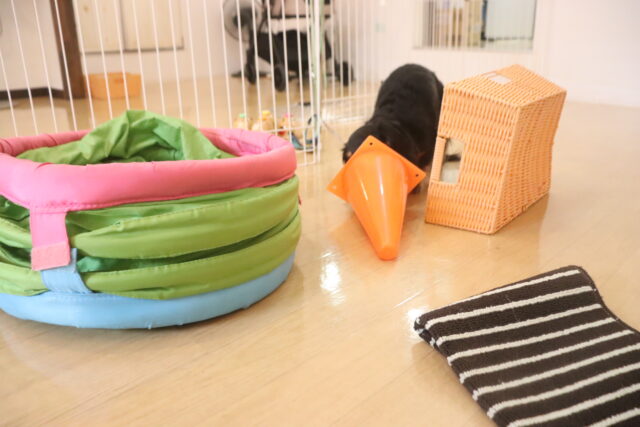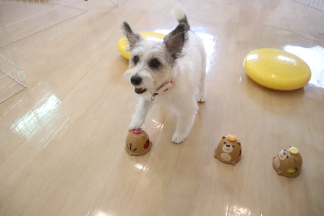 ソフィちゃん・ラテちゃん・エマちゃんはサークルの扉を使って足場慣れをしました!