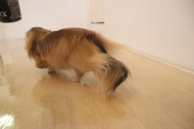上手に口でキャッチ出来るときもあれば、写真のように前足でディスクを掴もうとすることも…(笑)